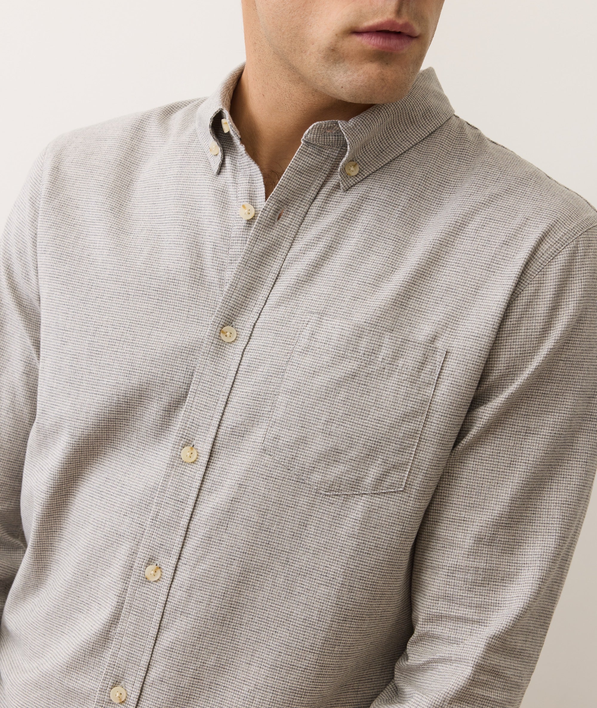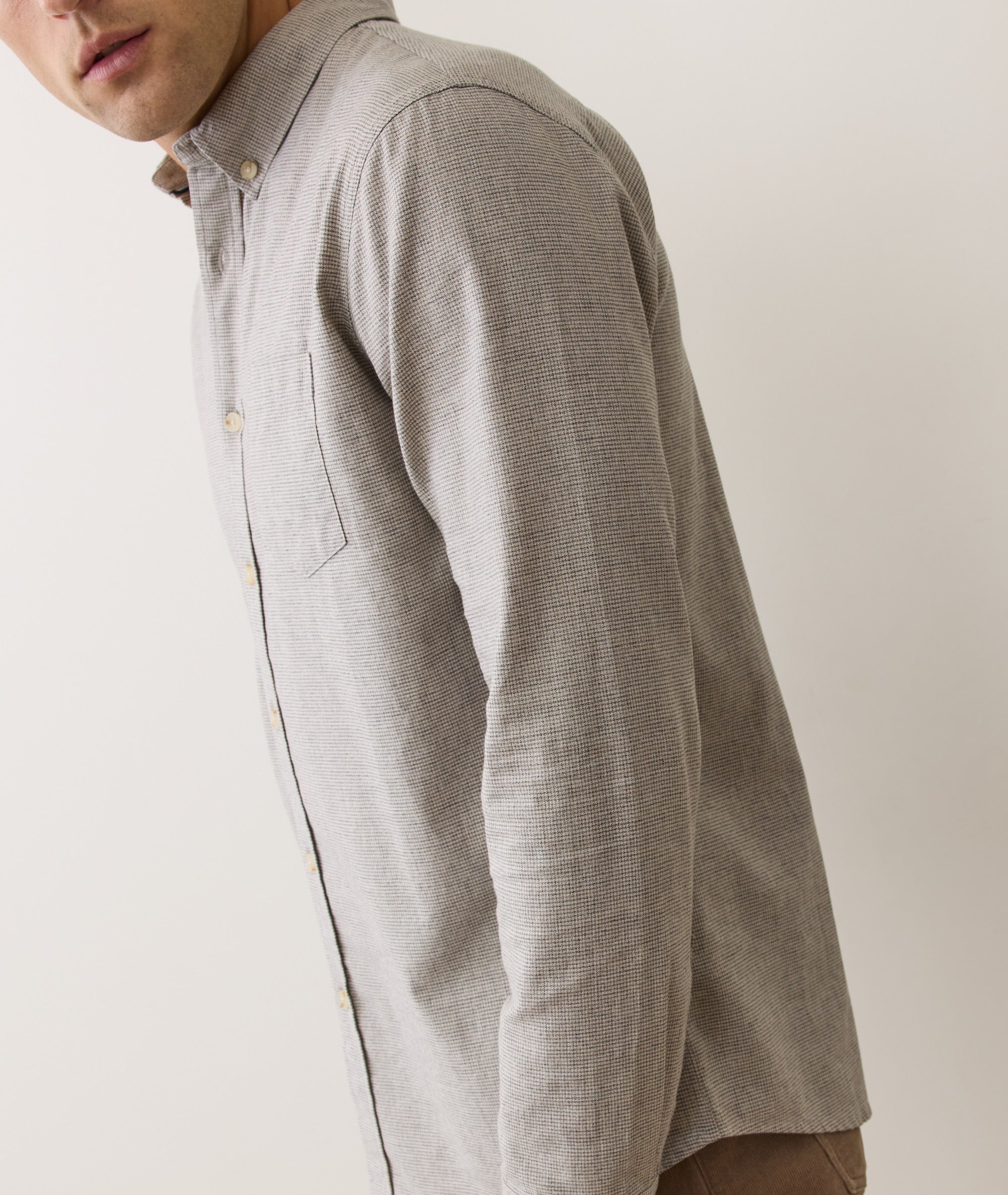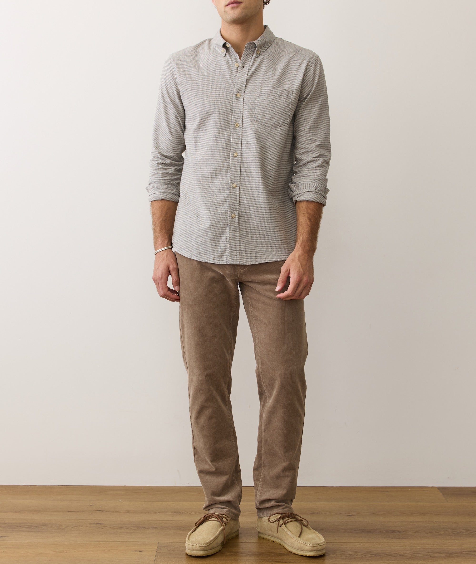 This is our laid-back take on the essential men's button down. We brushed the fabric to make it even softer to the touch, and wove it with enough stretch to keep you from getting bound up. Works tucked, untucked, or thrown on the beach while you jump in the ocean.