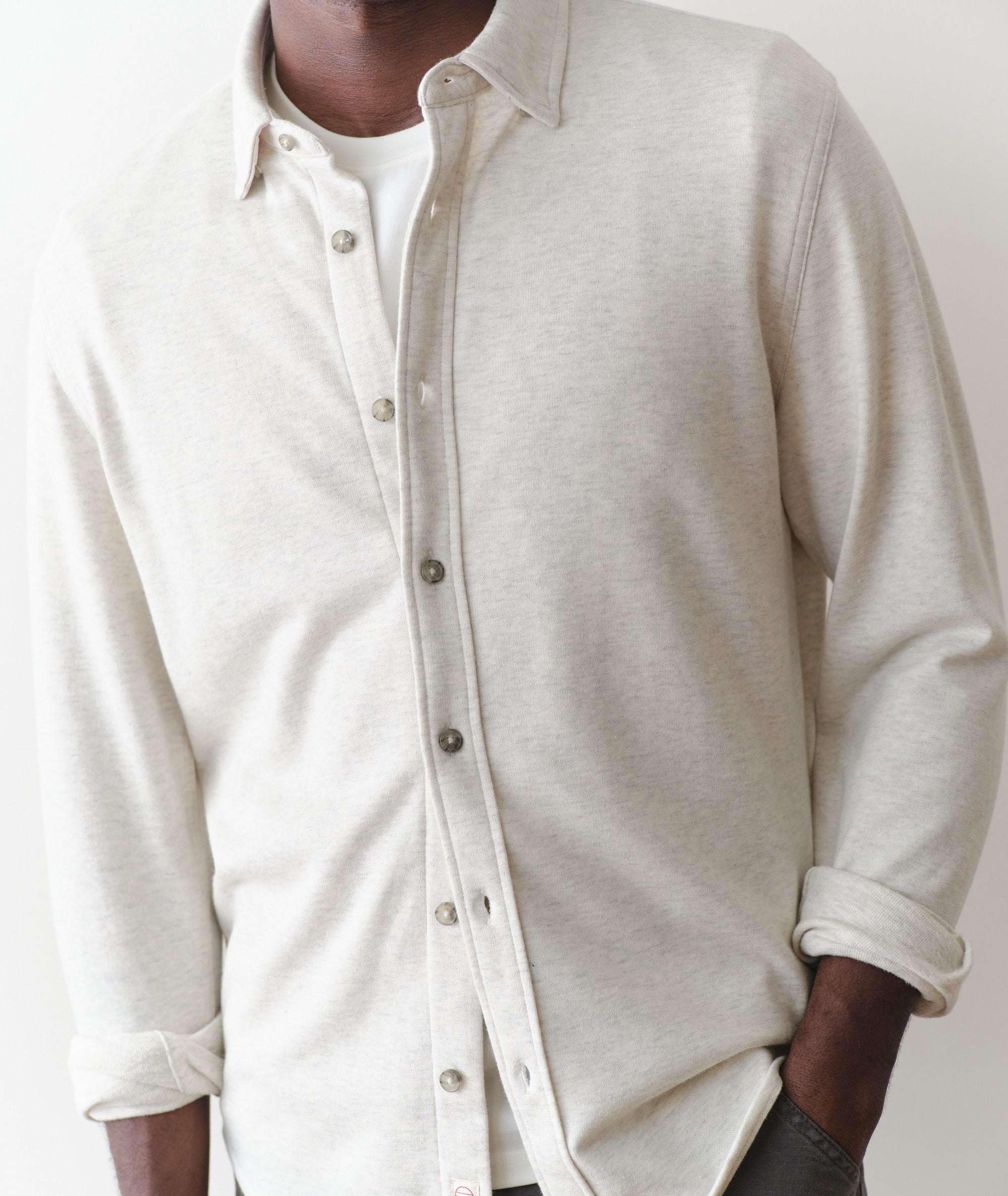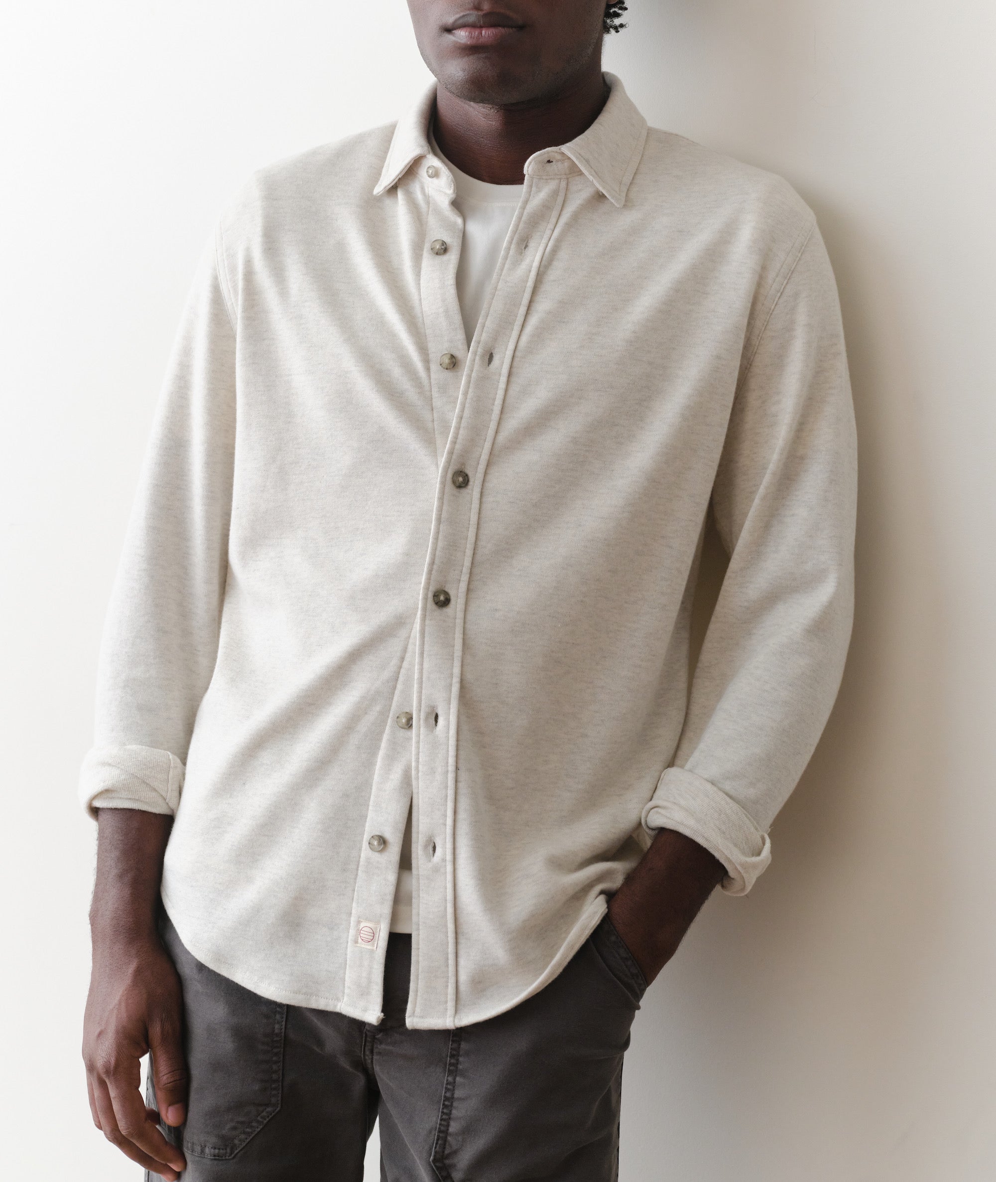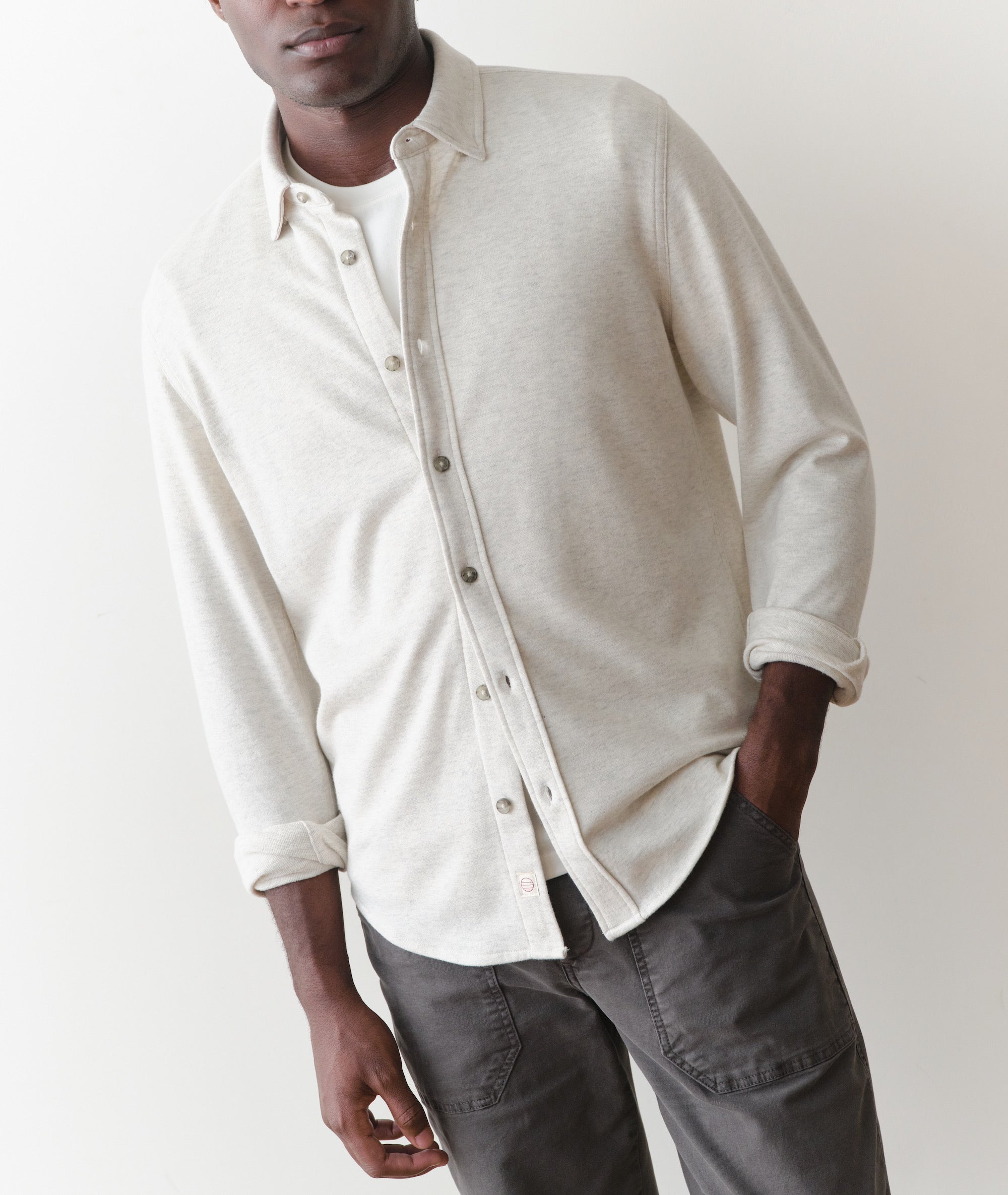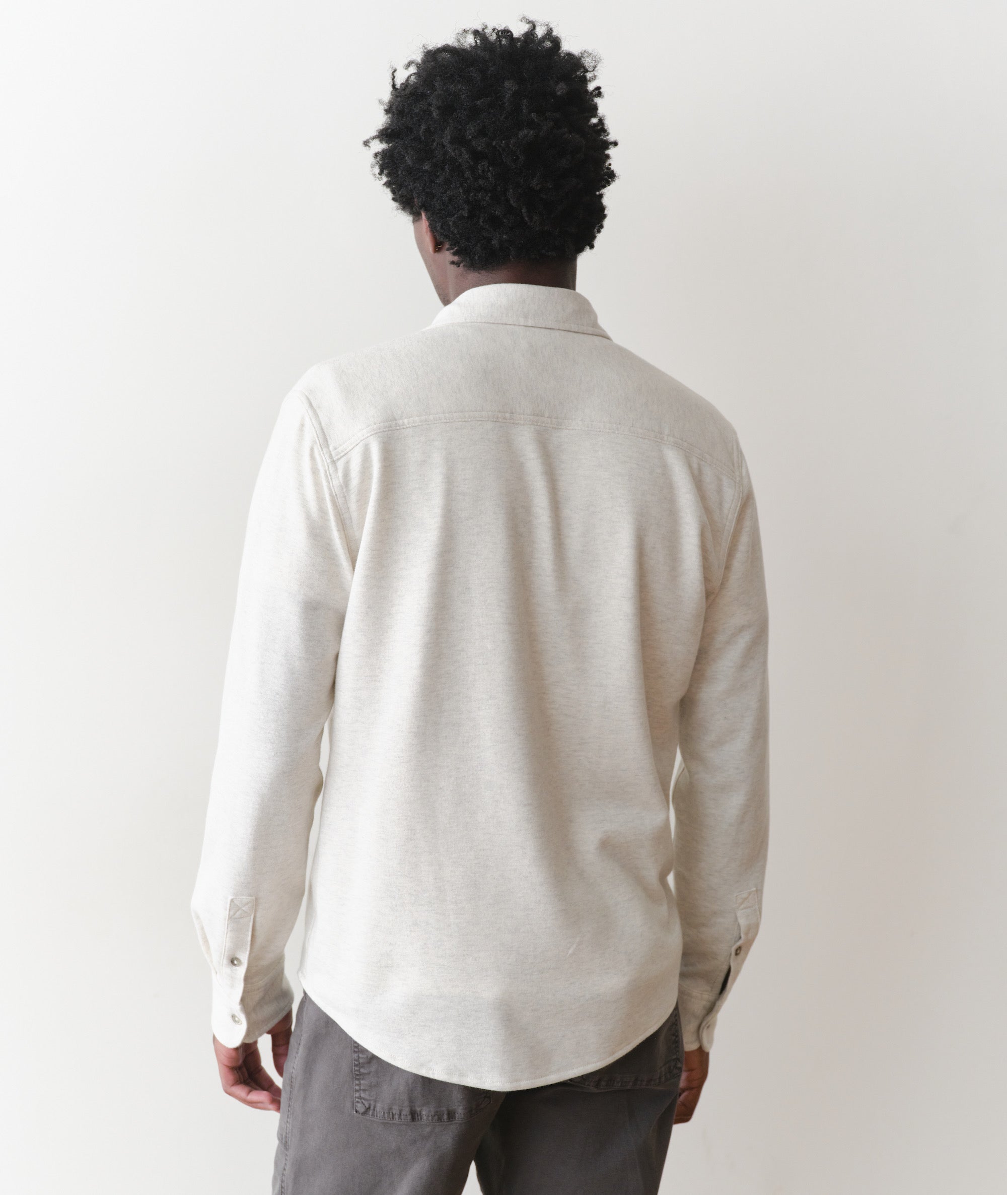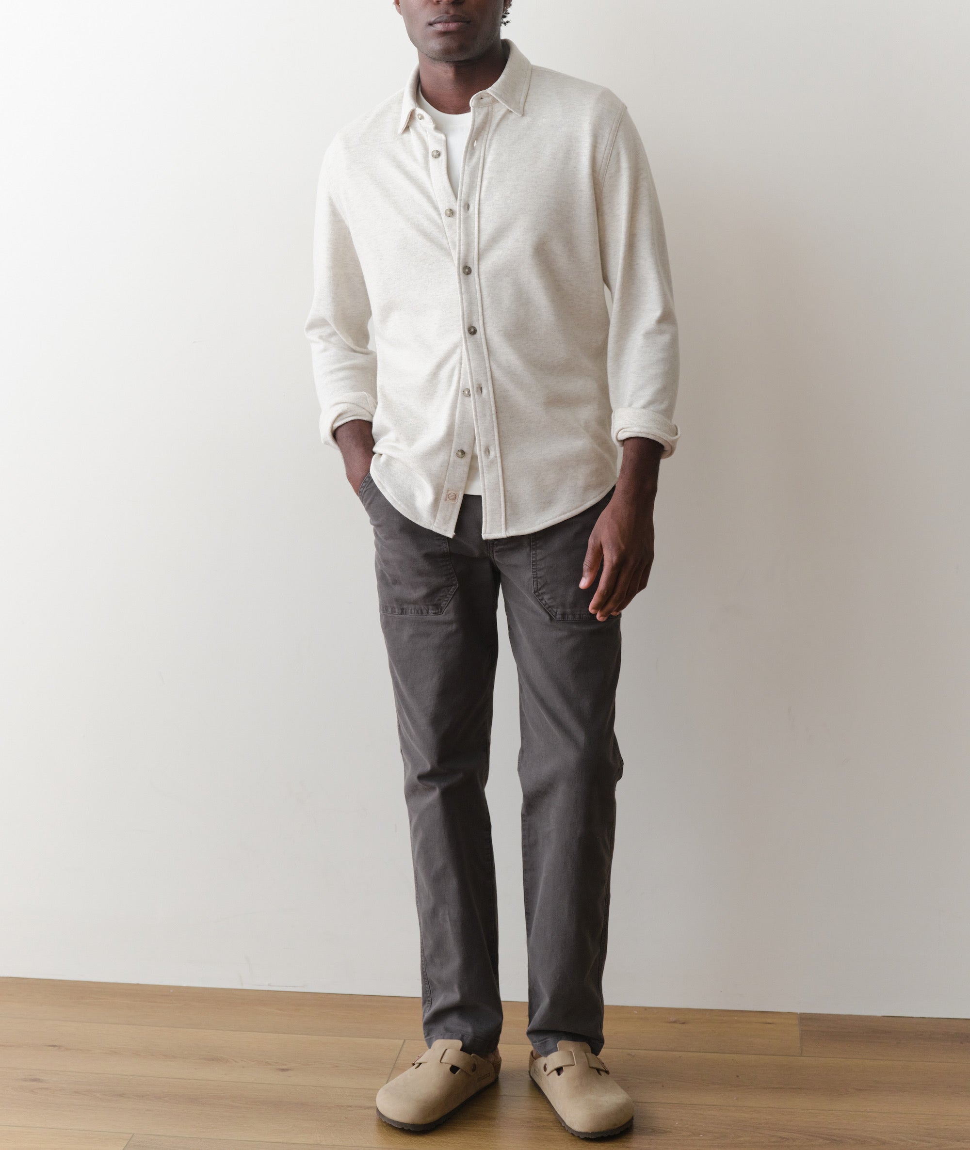 This is our medium weight Pacifica Stretch fabric: all the comfort of our bestselling overshirt, just about 100 GSM lighter. It's absurdly soft, and plenty stretchy to let you go about your business.