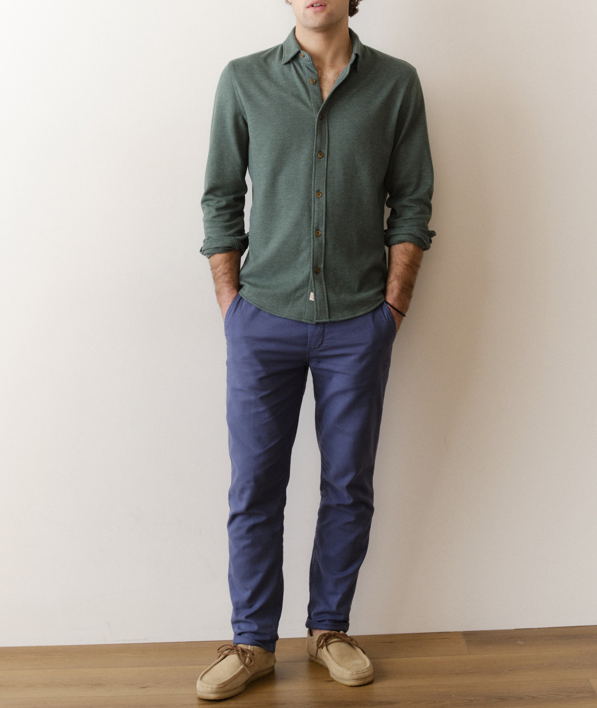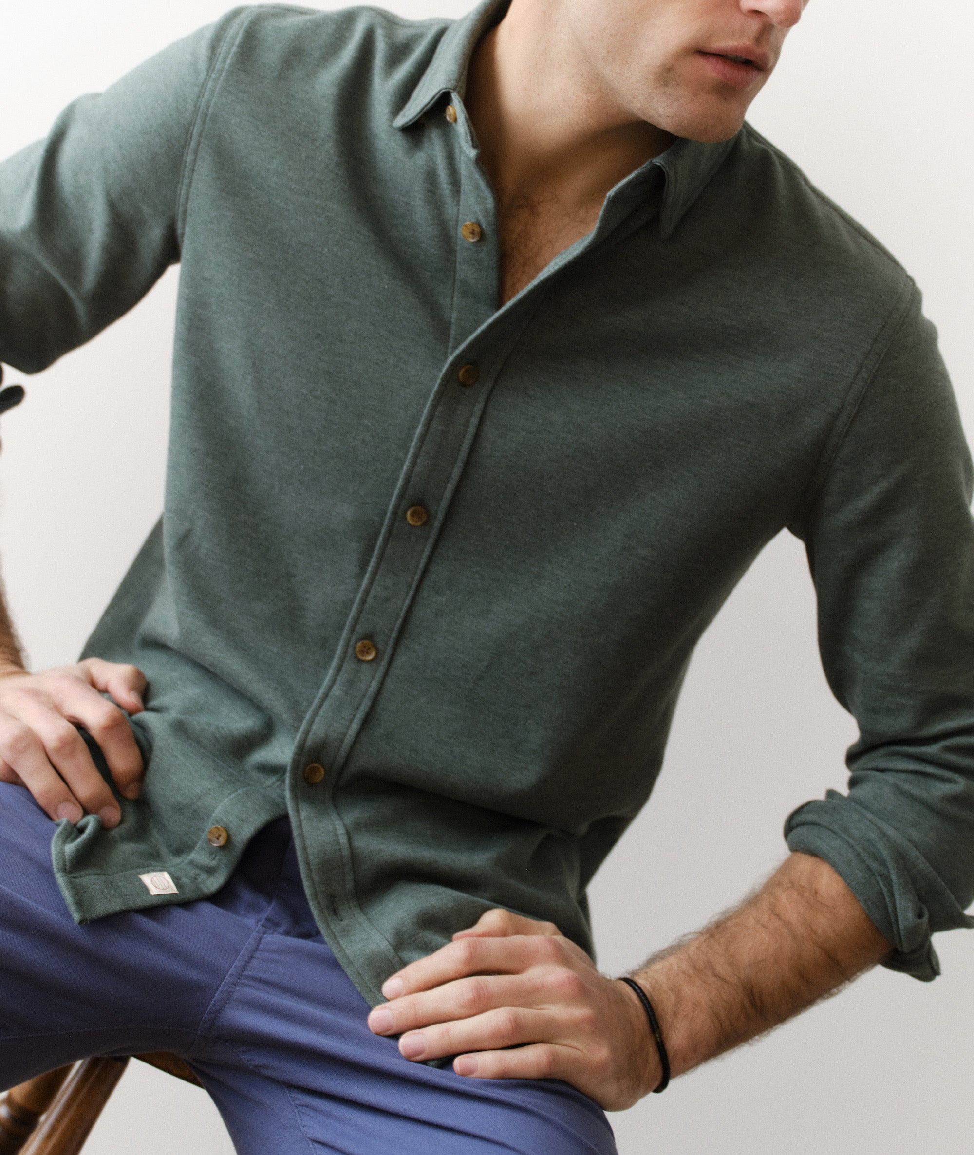 This is our medium weight Pacifica Stretch fabric: all the comfort of our bestselling overshirt, just about 100 GSM lighter. It's absurdly soft, and plenty stretchy to let you go about your business.