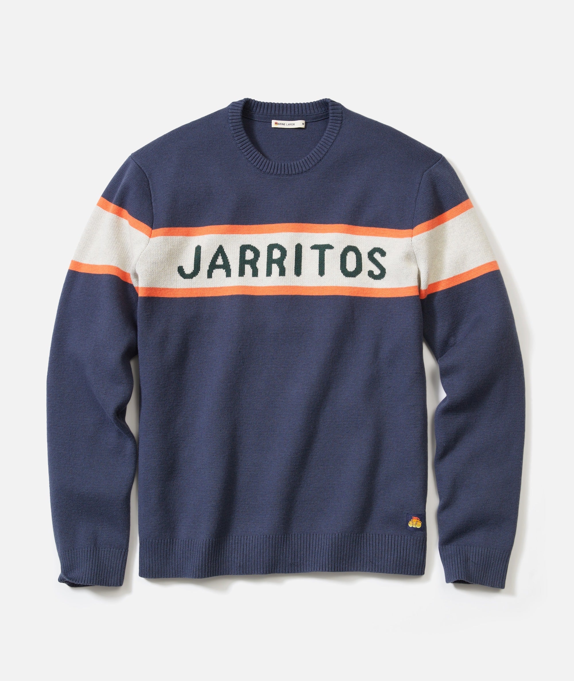 This sweater is part of our exclusive Marine Layer x Jarritos collab celebrating bright colors, hanging at taquerias, and generally enjoying life. It's a super soft knit that's thick enough to wear when the temps dip, and fun enough to wear everywhere sweaters feel too stuffy. It's also one of those, "Tell us you're from California without telling us you're from California" things.