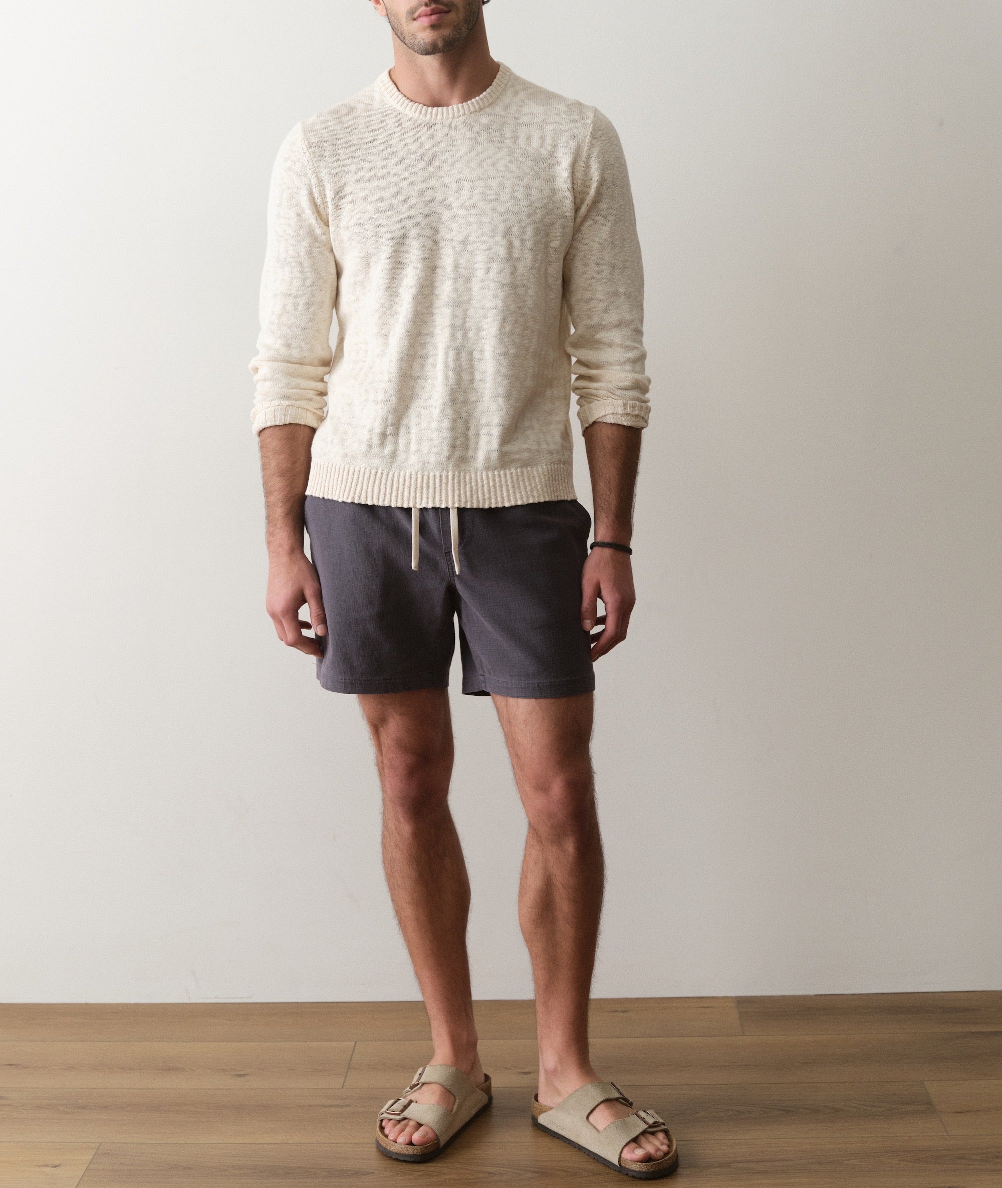 This lightweight slub crew sweater is built for going between seasons like a dream. The knit has that perfectly imperfect, high-low texture that gives it depth and character. It's breathable enough for spring afternoons, easy enough for cool summer nights, and polished without ever trying too hard. Nobody likes a sweater that tries too hard.