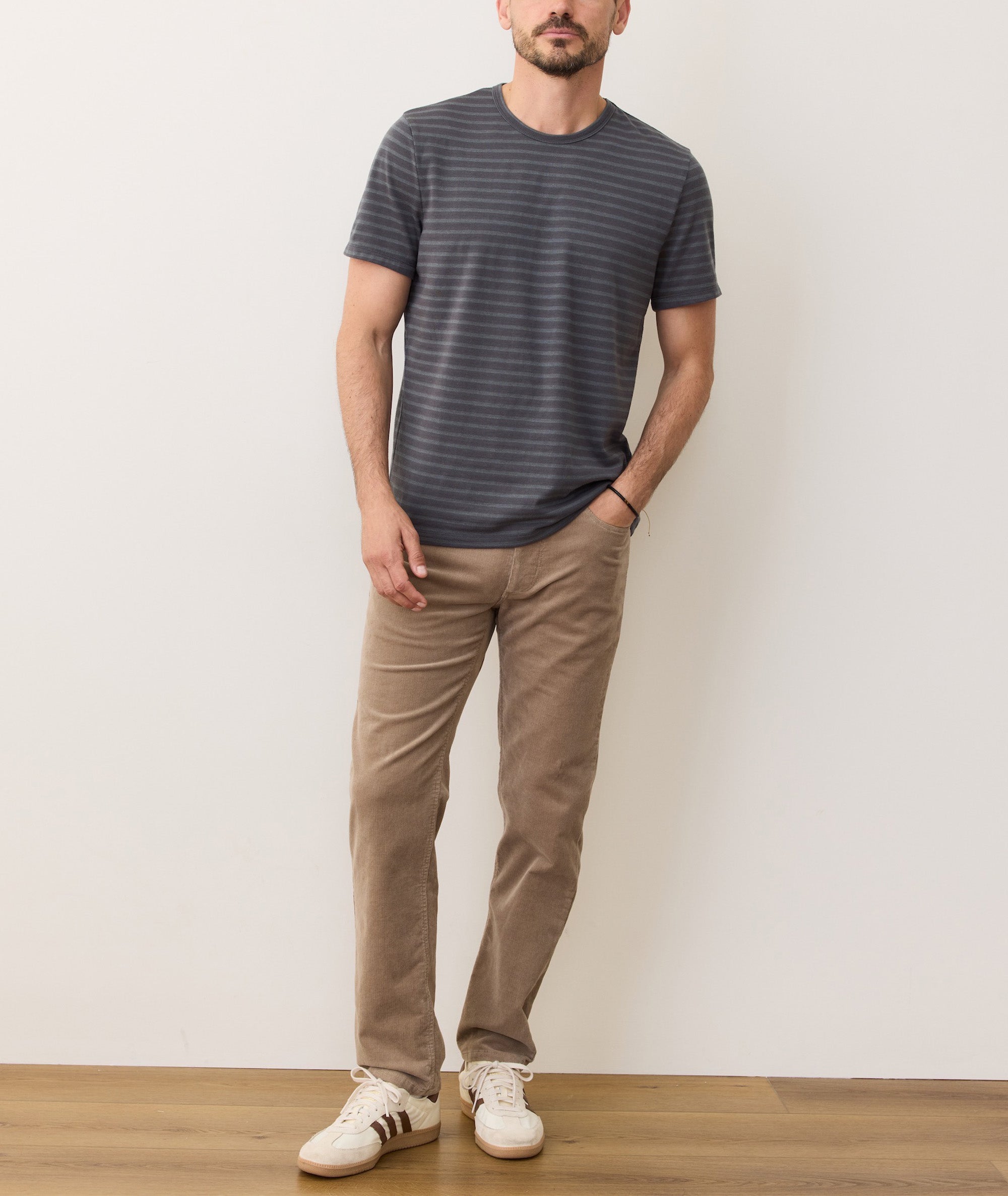 If you’ve never heard of jacquard, it’s just a fancy word for a texture that’s woven into a fabric—which in this case is that stripe pattern. The trick is in keeping the shirt soft while you do it. That’s the secret the other guys are still trying to figure out.