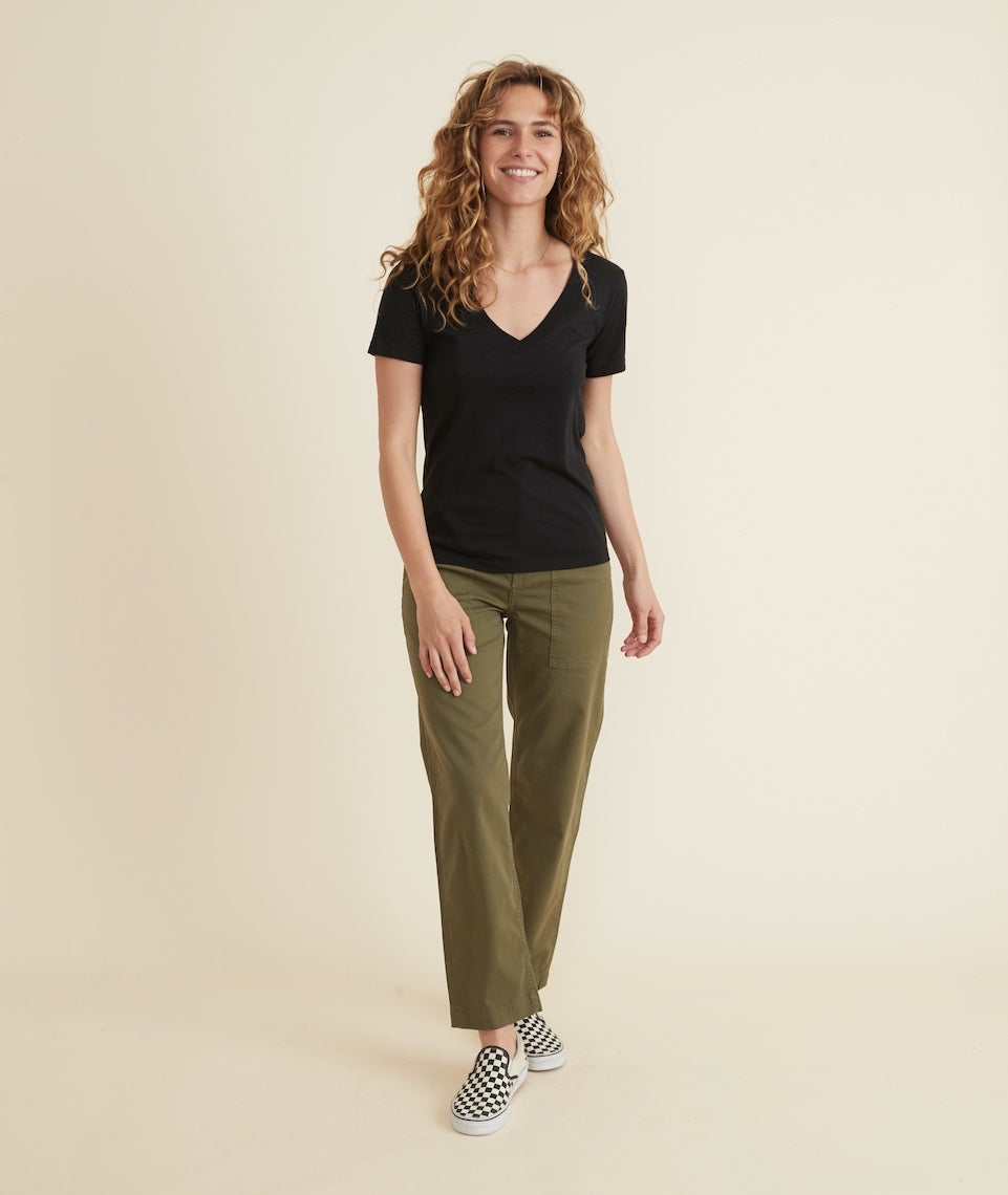 We updated our Classic V-Neck this year to make it slightly more roomy (where it's not too tight, but not too flowy) for an easy, just-right fit. We also lowered the V and gave it a thicker rib trim, so you can show off those collarbones. Because every masterpiece needs a good frame.