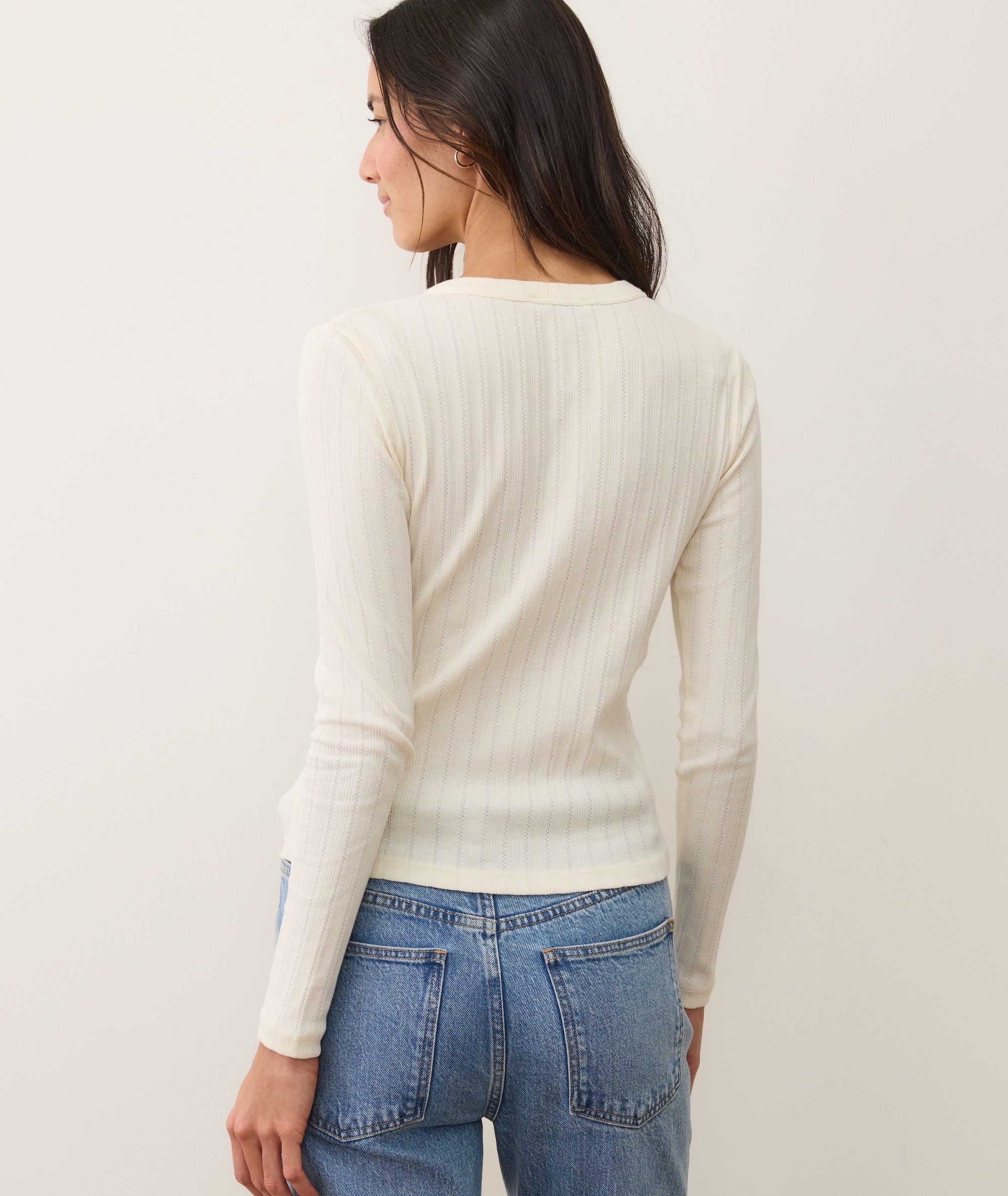 The absurdly comfortable fabric from our bestselling Lexi tees made even more feminine with a pointelle stitch. All the timeless soft, stretchy comfort, with the trendiness for today. The best of both worlds, really.