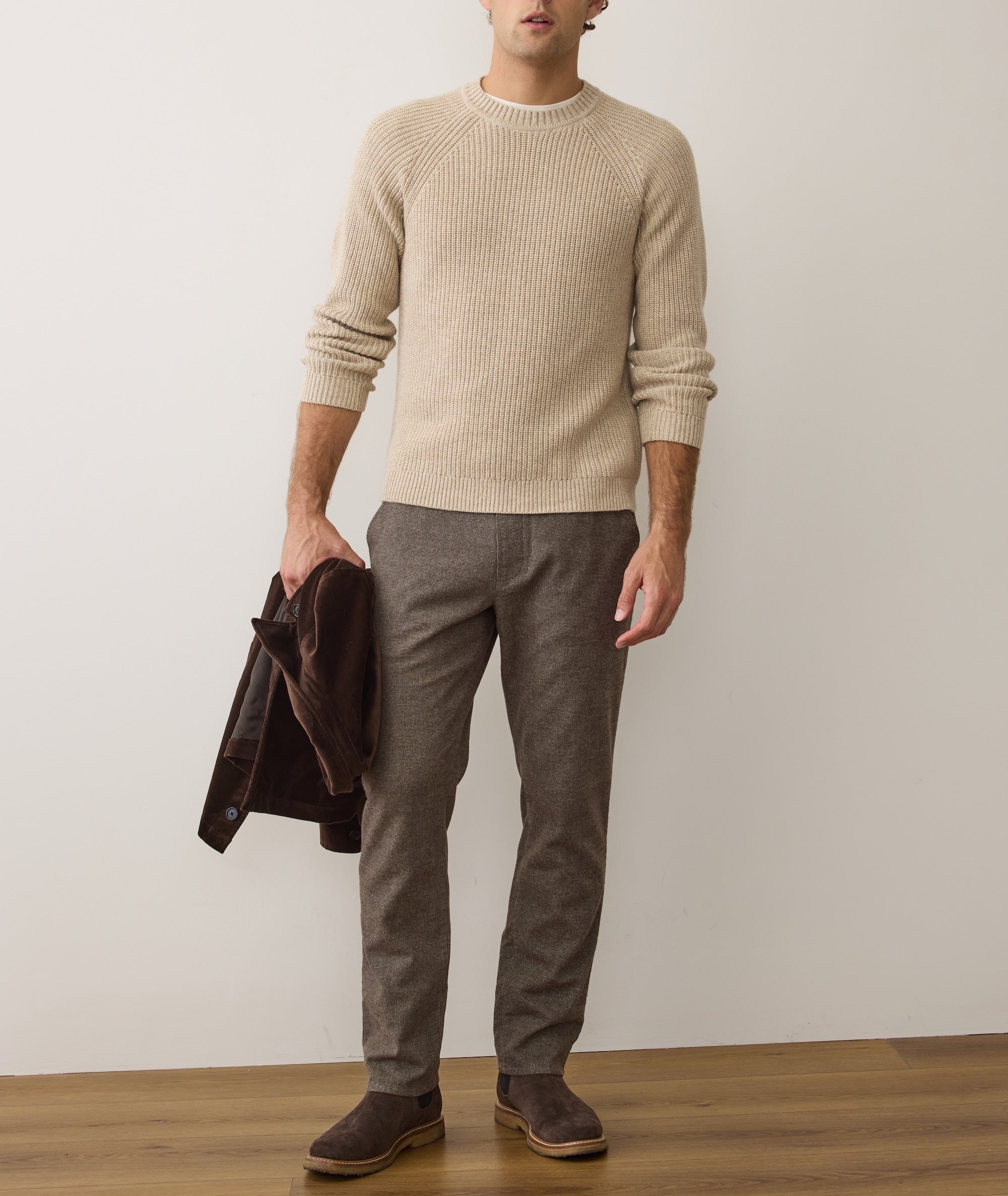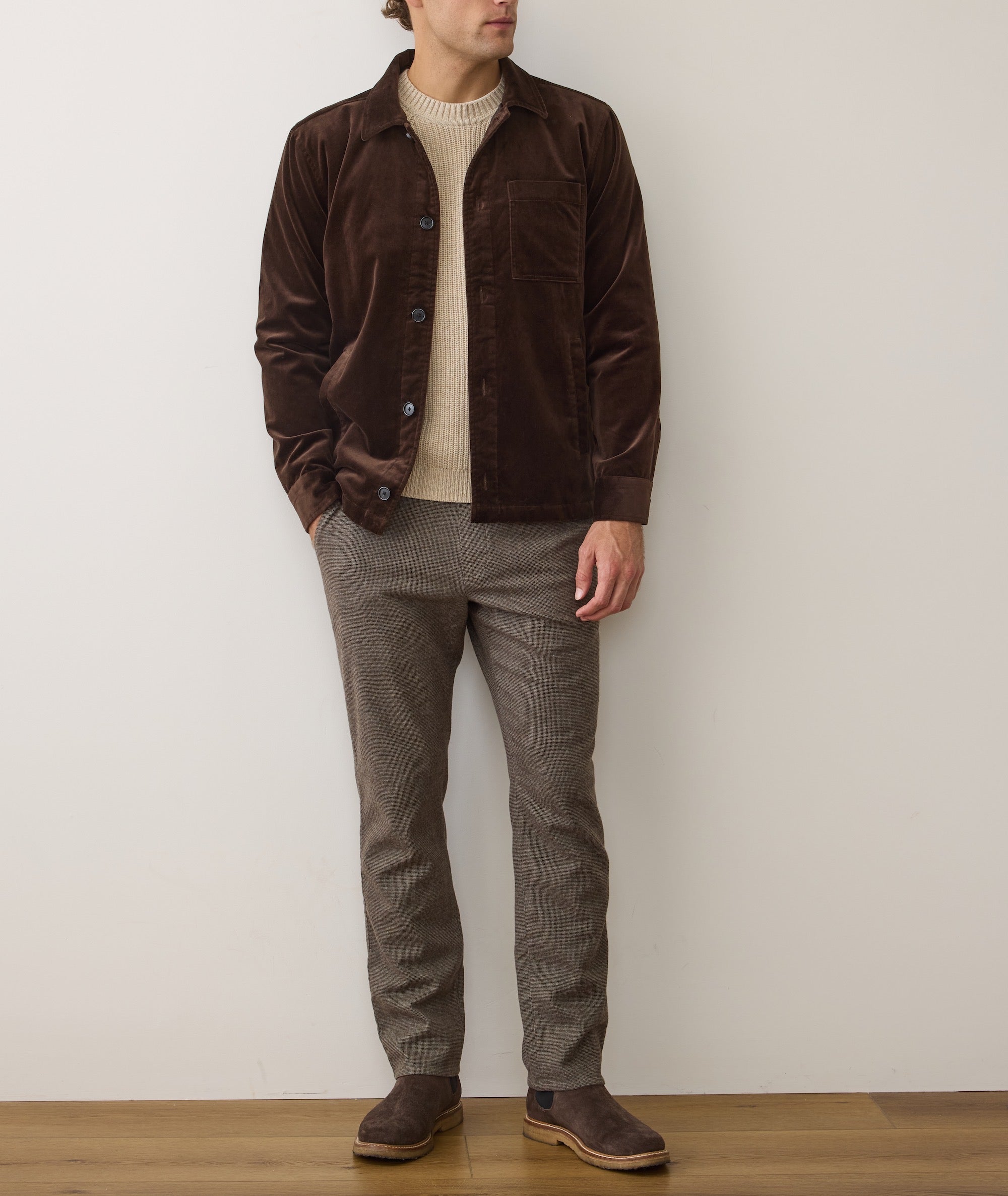 This fabric is inspired by men's flannel dress pants, so it's ultra brushed and soft to the touch, but still thick enough to hold up against the winter weather. And thanks to a little spandex, they'll move with you too.