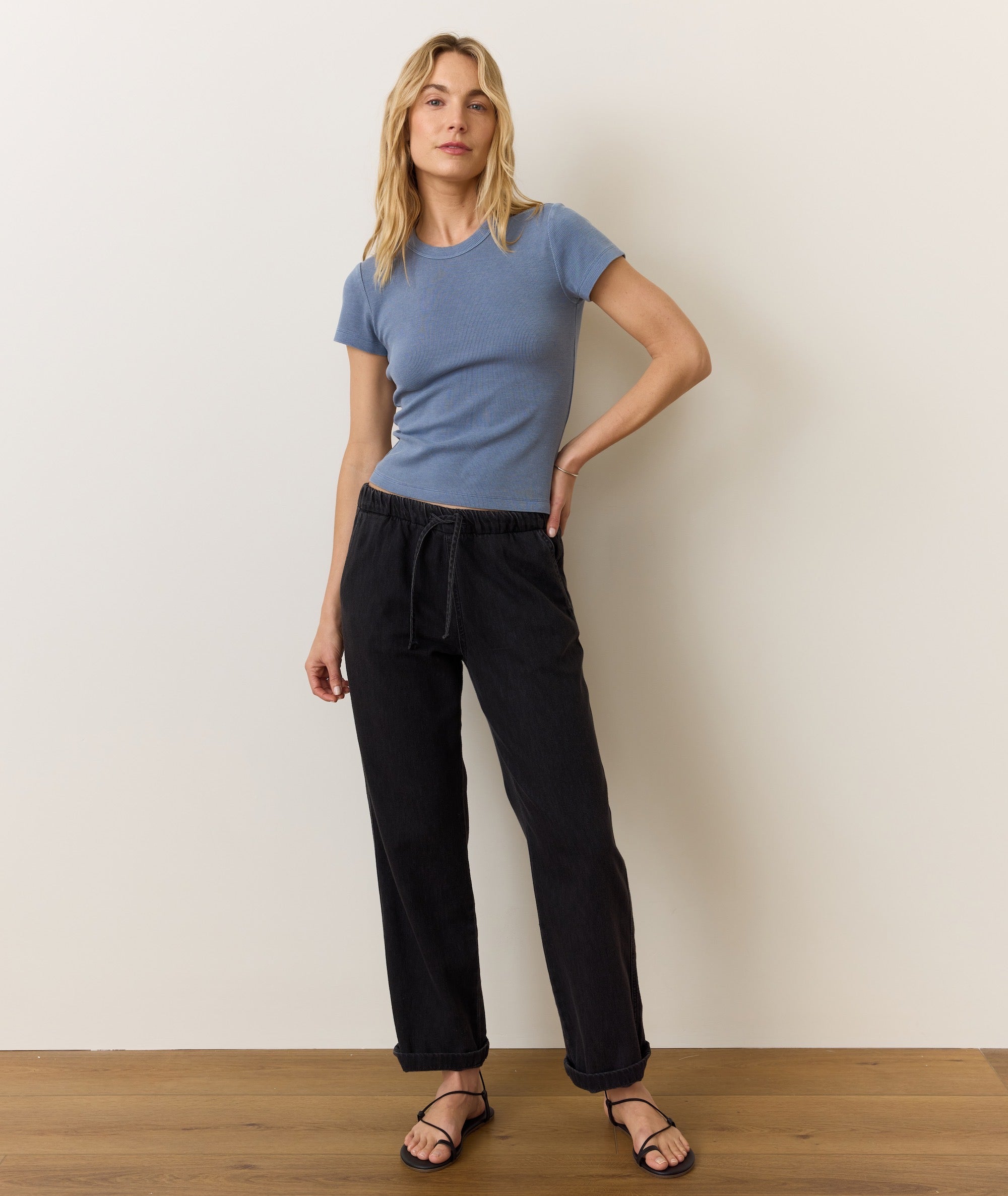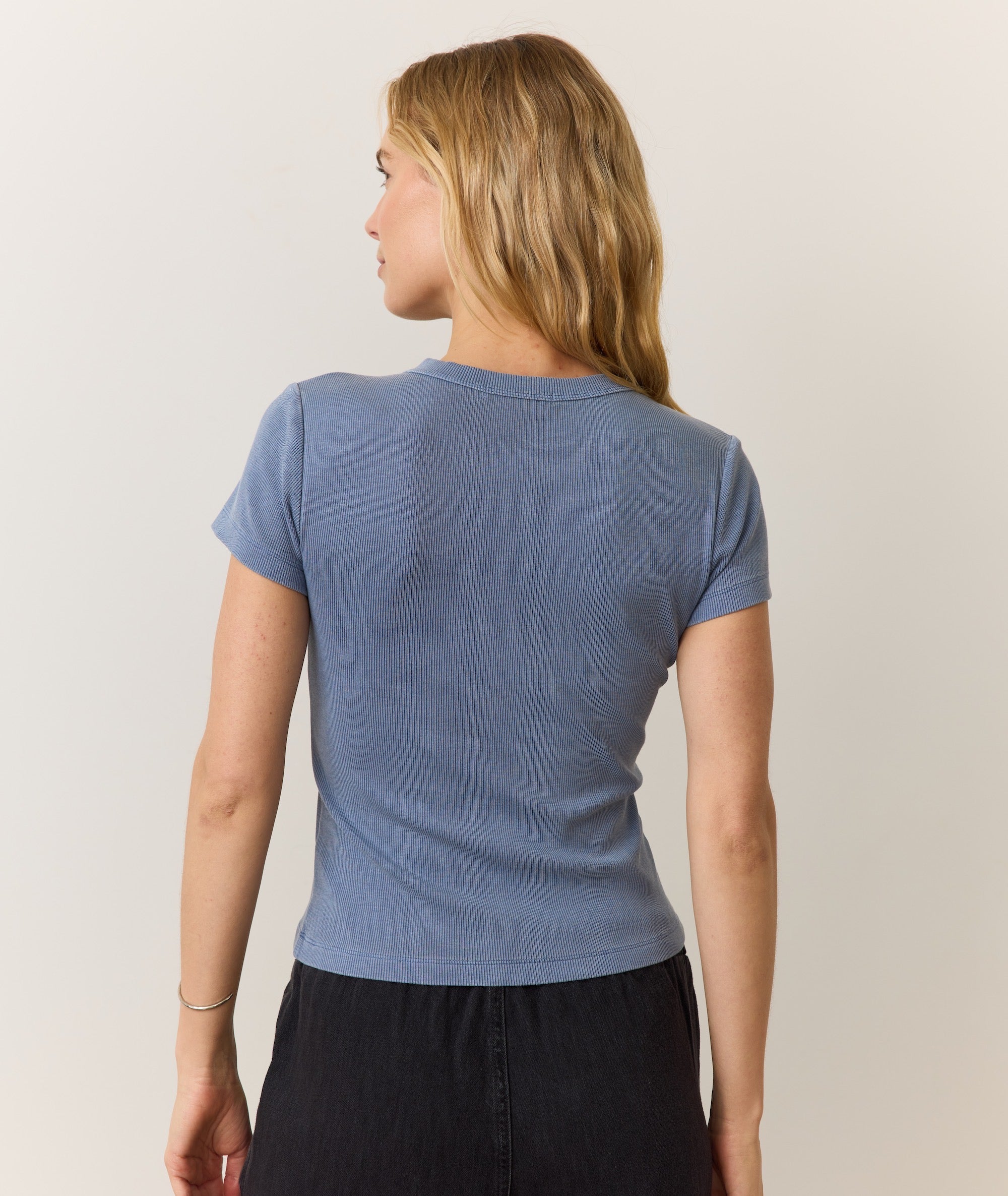 Meet the freshest take on our Lexi Rib fabric. This style has been garment dyed for a naturally sun-faded, broken-in look and feel. The fit? It's a perfect, slightly fitted version of a crew tee. (Think baby tee, but not as tight.) It's absurdly soft, comfortable, and has a great thick texture. Perfection? We'd like to think so.