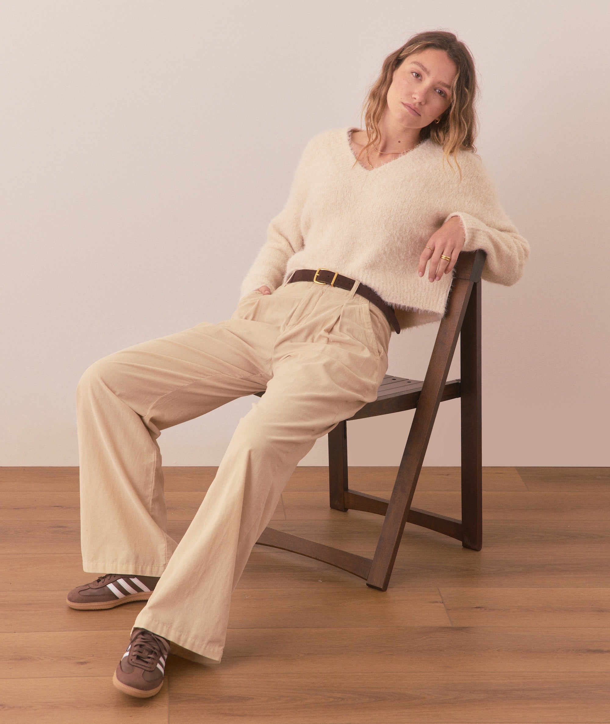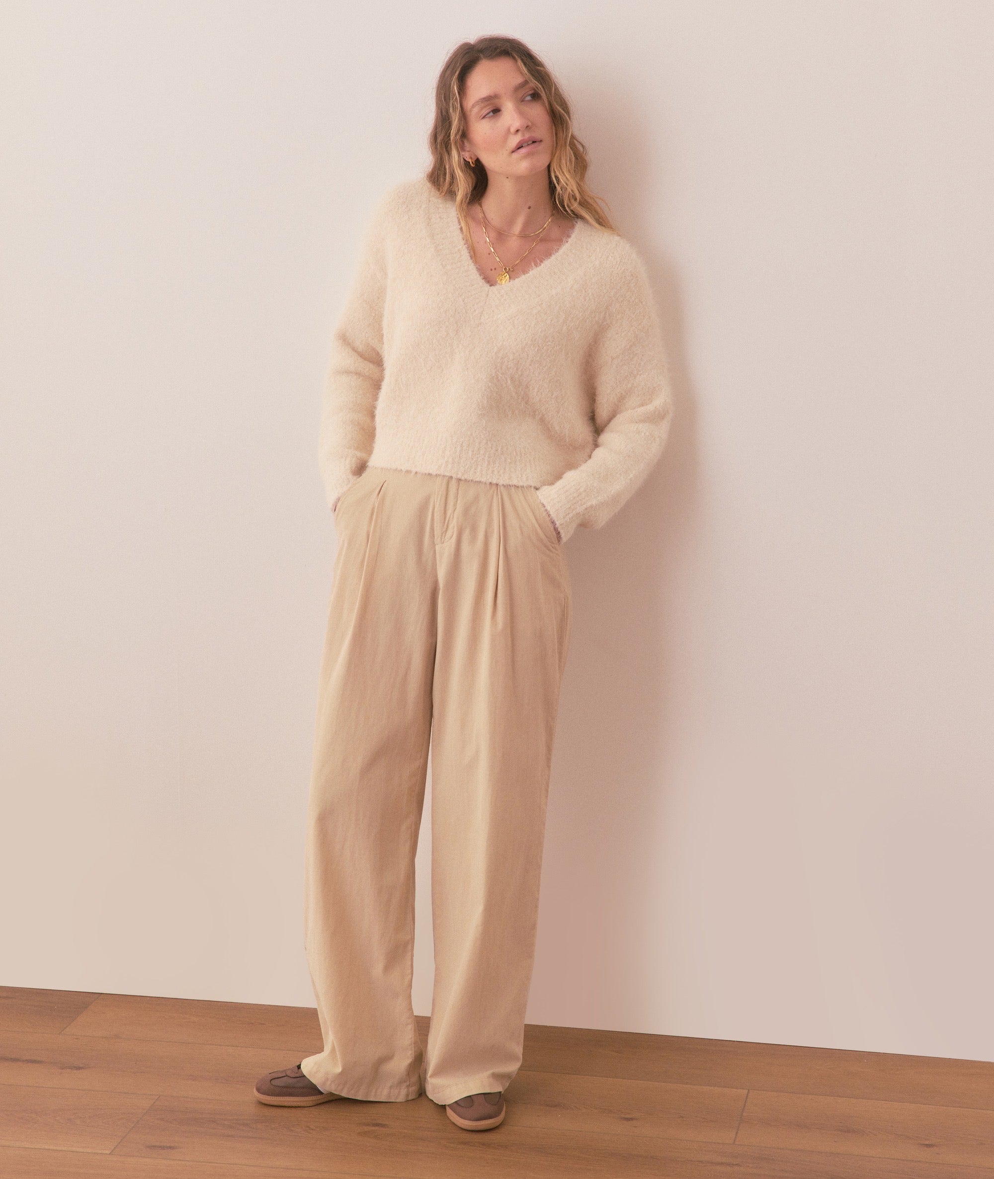 This sweater is crafted from ultra plush Teddy Eyelash yarn that delivers incredible softness and holds rich color, making it perfect for both lounging at home and elevating your everyday. It’s designed with a slightly cropped, oversized fit. Throw it on with jeans, a slip skirt, or even over a dress if you're feeling wild.