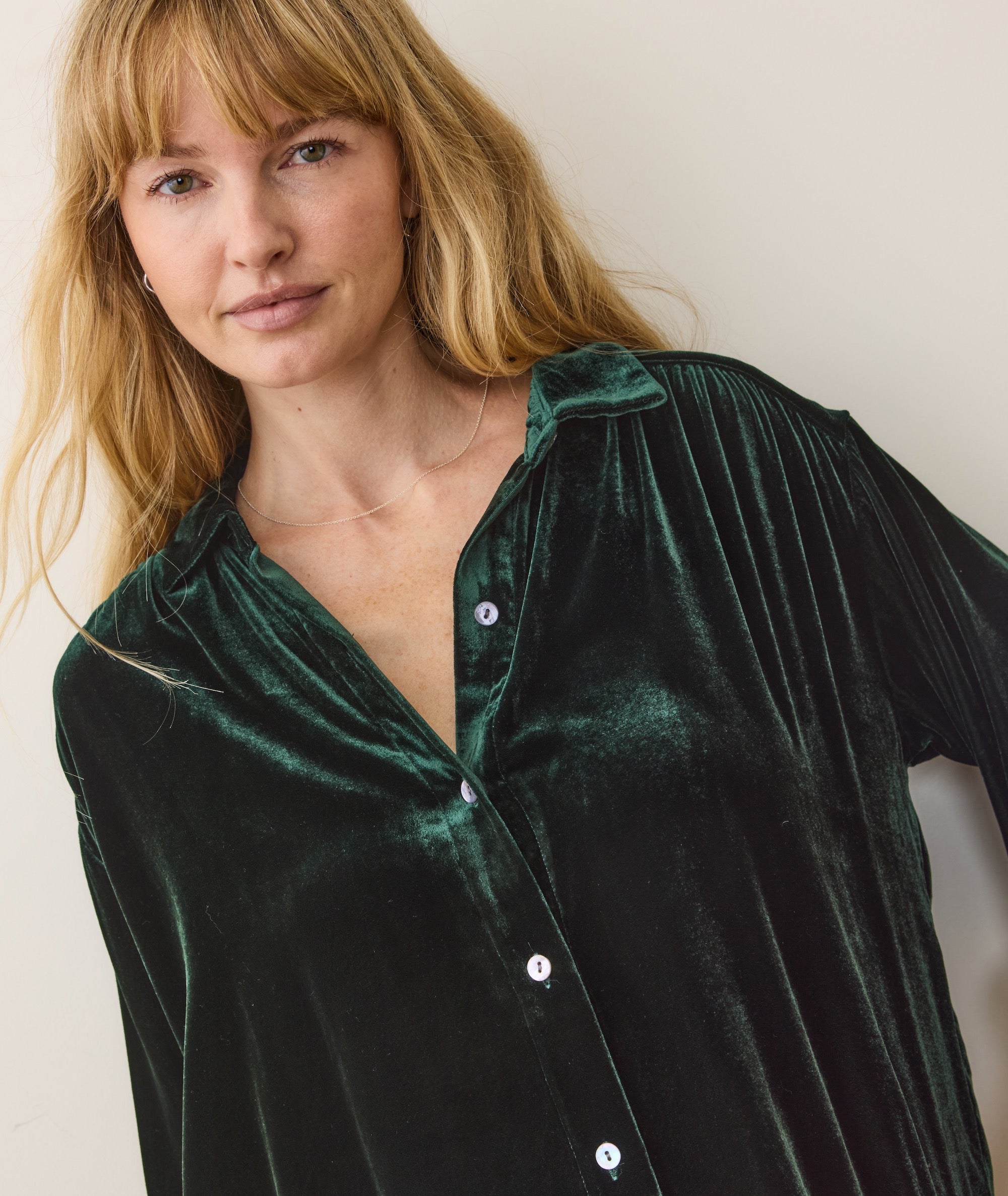 This velvet fabric is oh-so soft, drapey, and yes velvety. It's also lightweight so it feels completely effortless to wear. Cheers to that.