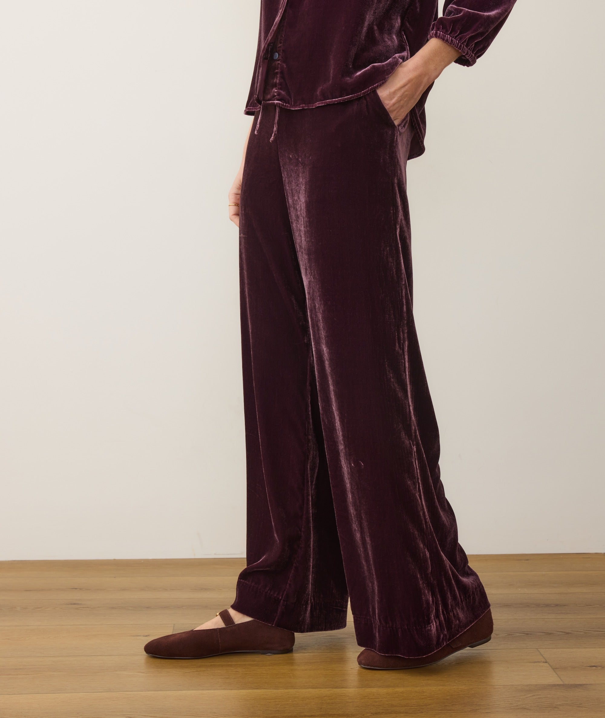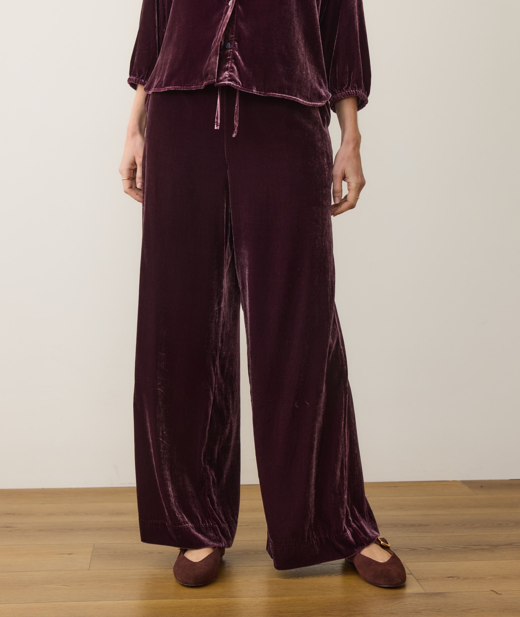 These oh-so sleek pants are inspired by the simple drawstring waist of one of our favorite pants of summer. So they feel flowy and relaxed, even as you get the rich, luxe feel of velvet. They're perfect for cocktail hour, dimly lit dinners, and everywhere you want to bring a little luxury this holiday. Especially if you wear them with the matching top.