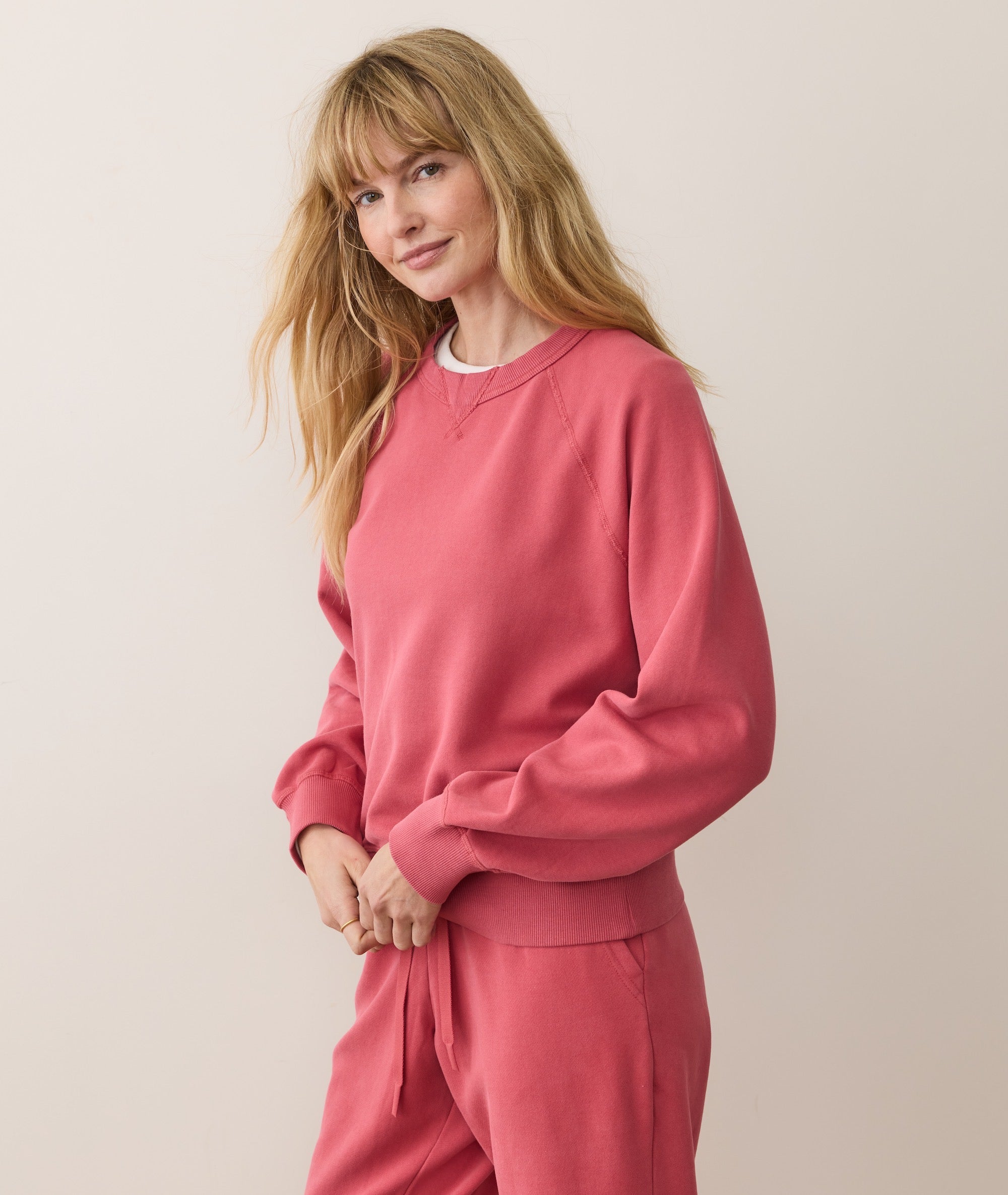 We spent 7 years developing this soft, lofty, downright heavenly fabric. We call it Cloud 9 Fleece. Peached on the outside, and amazingly fuzzy on the inside, it's the kind of comfortable you end up comparing everything else to.