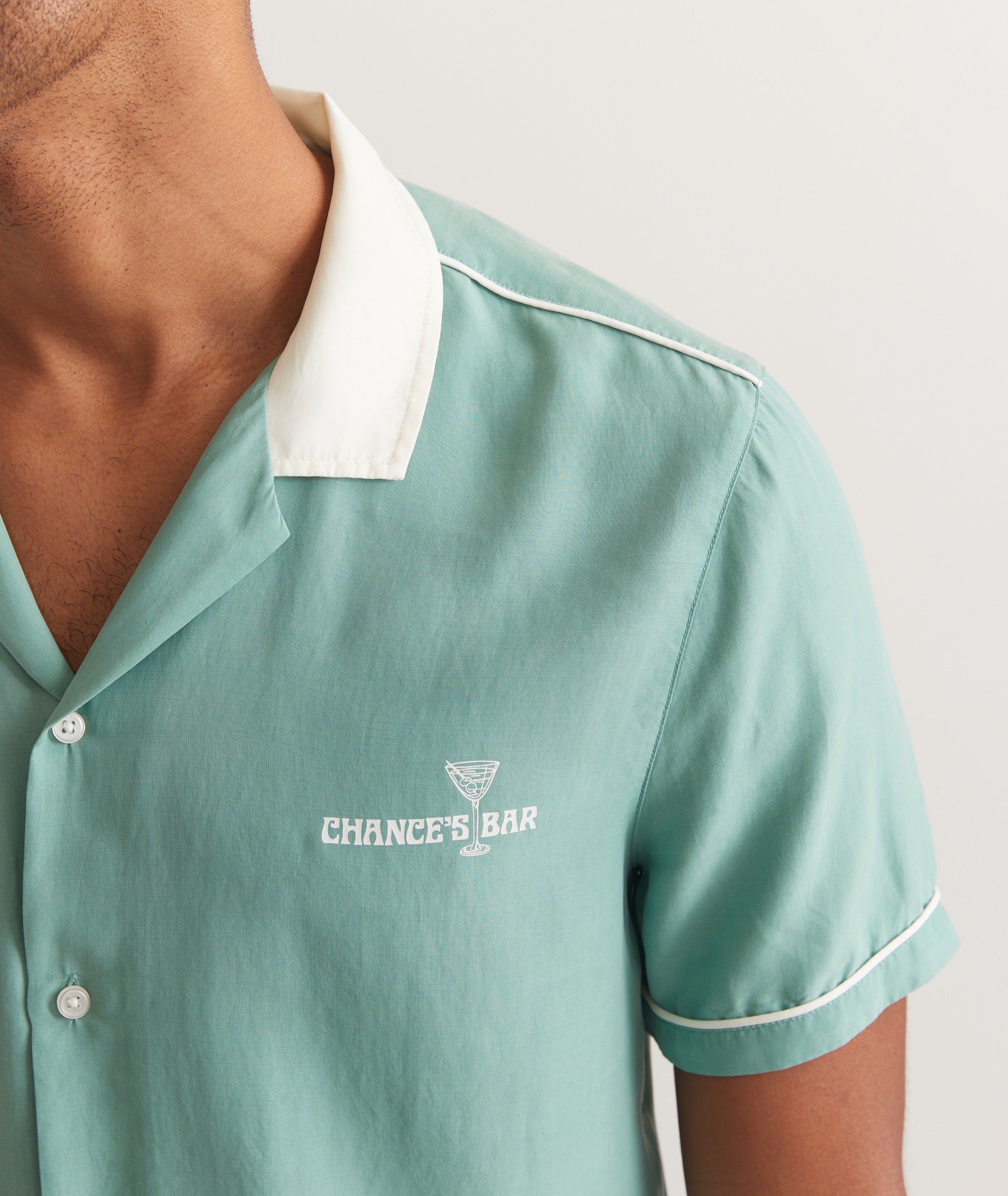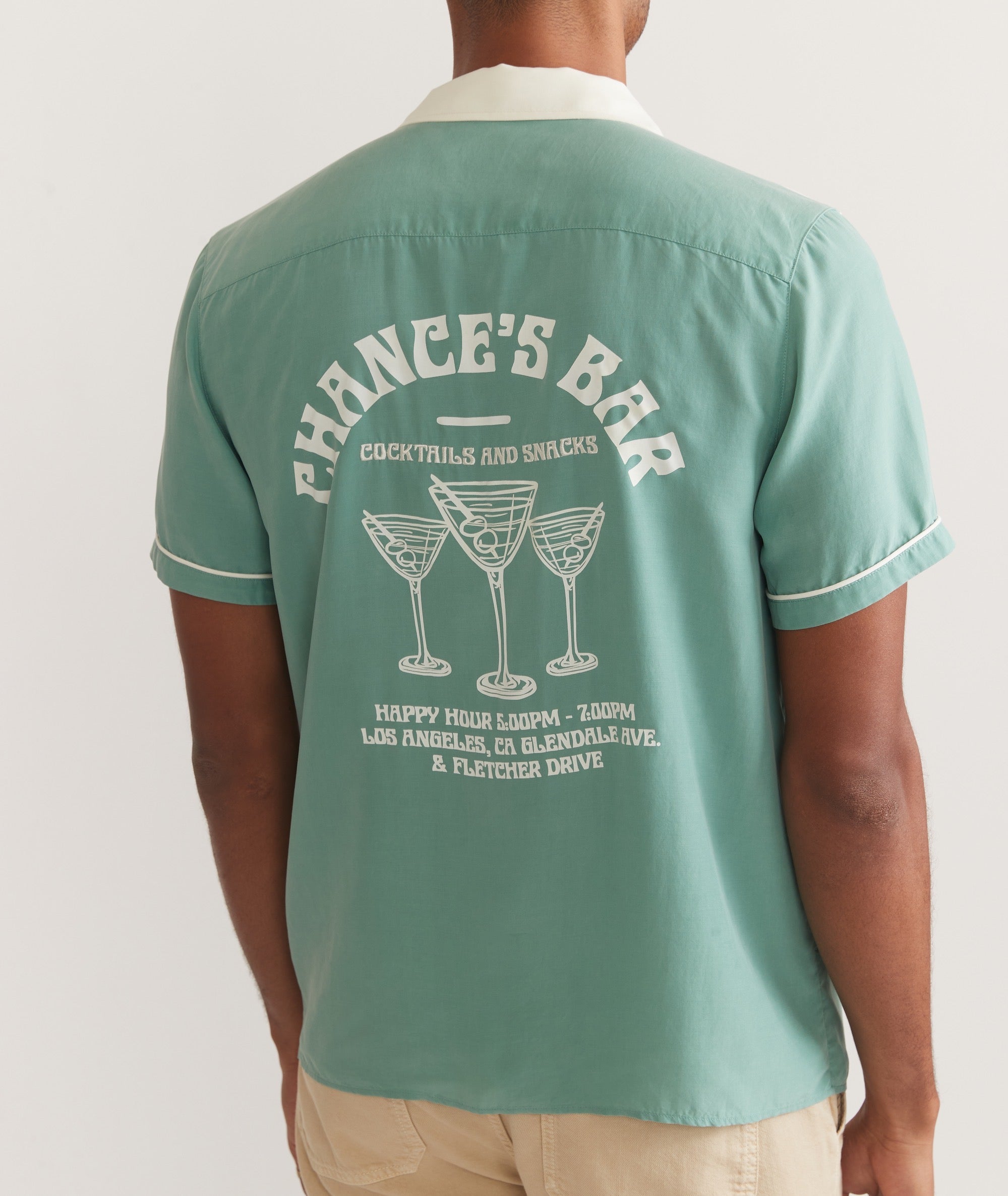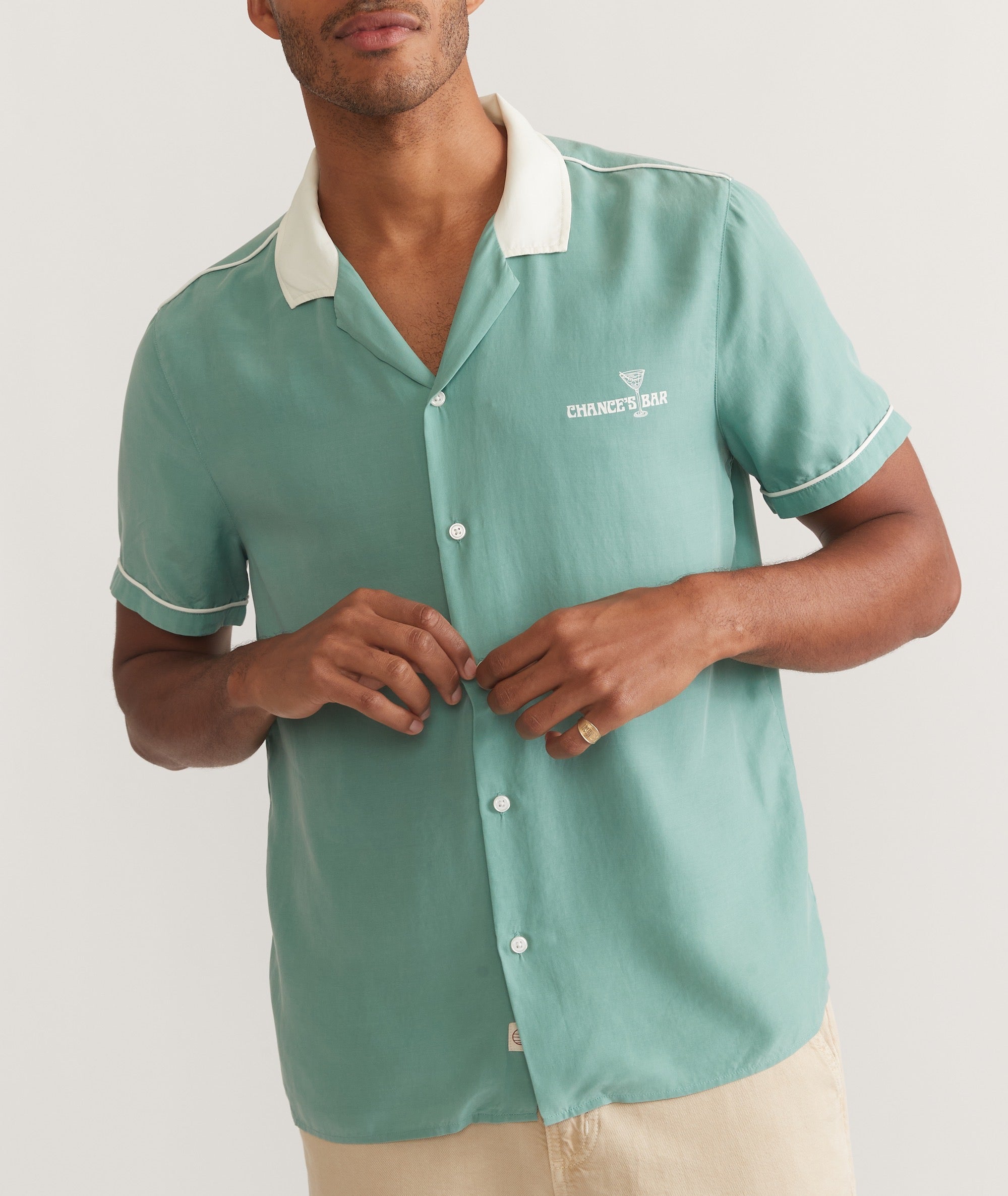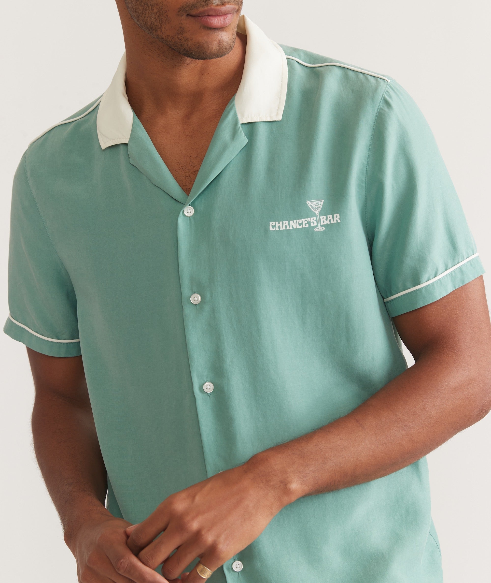 Get ready to bowl a perfect game. This new vintage-inspired bowling shirt pulls out all the stops with a contrast collar, piping on the sleeves and shoulders, and an old-school graphic. It's made with a slinky, silk-like fabric that looks and feels vintage. (Oh yeah, and you don't have to be bowling to wear it.)