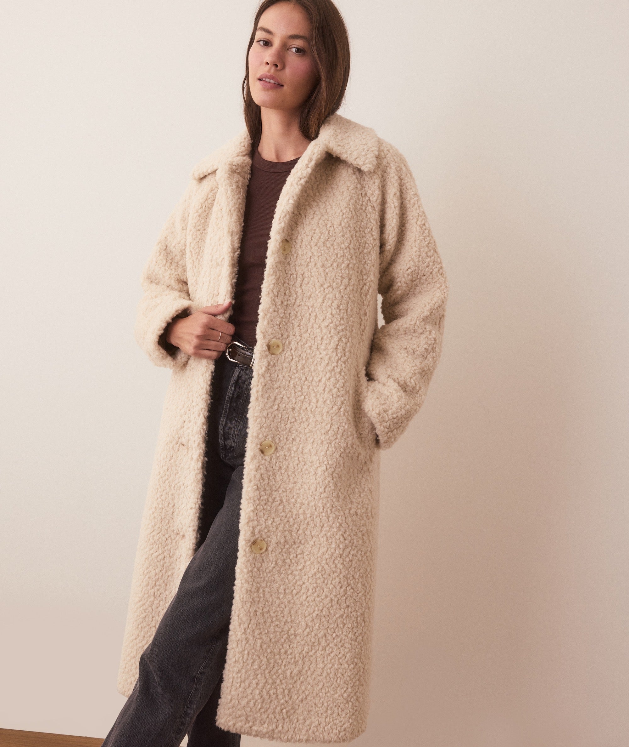 This is the coat that'll make winter a little warmer and a lot more stylish. Whether you're casually walking the dog or making an entrance at that holiday party, this beauty has you covered—literally. Crafted with a gorgeous textured plaid in a perfectly neutral palette, it's easy through the body and cozy without being bulky. Lined for warmth, loaded with interior and exterior pockets, and complete with a little "sending sun from SF" internal patch for good vibes.