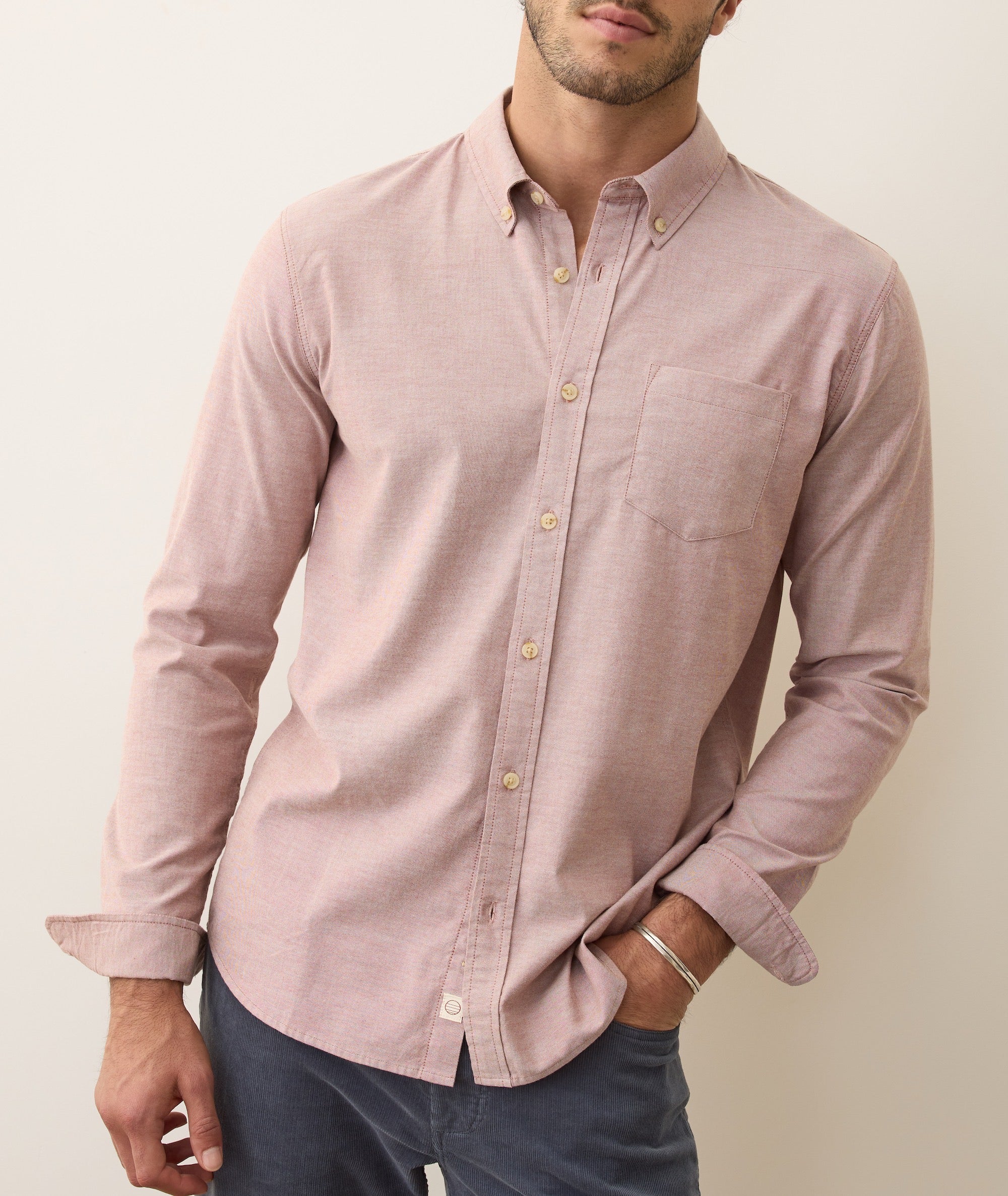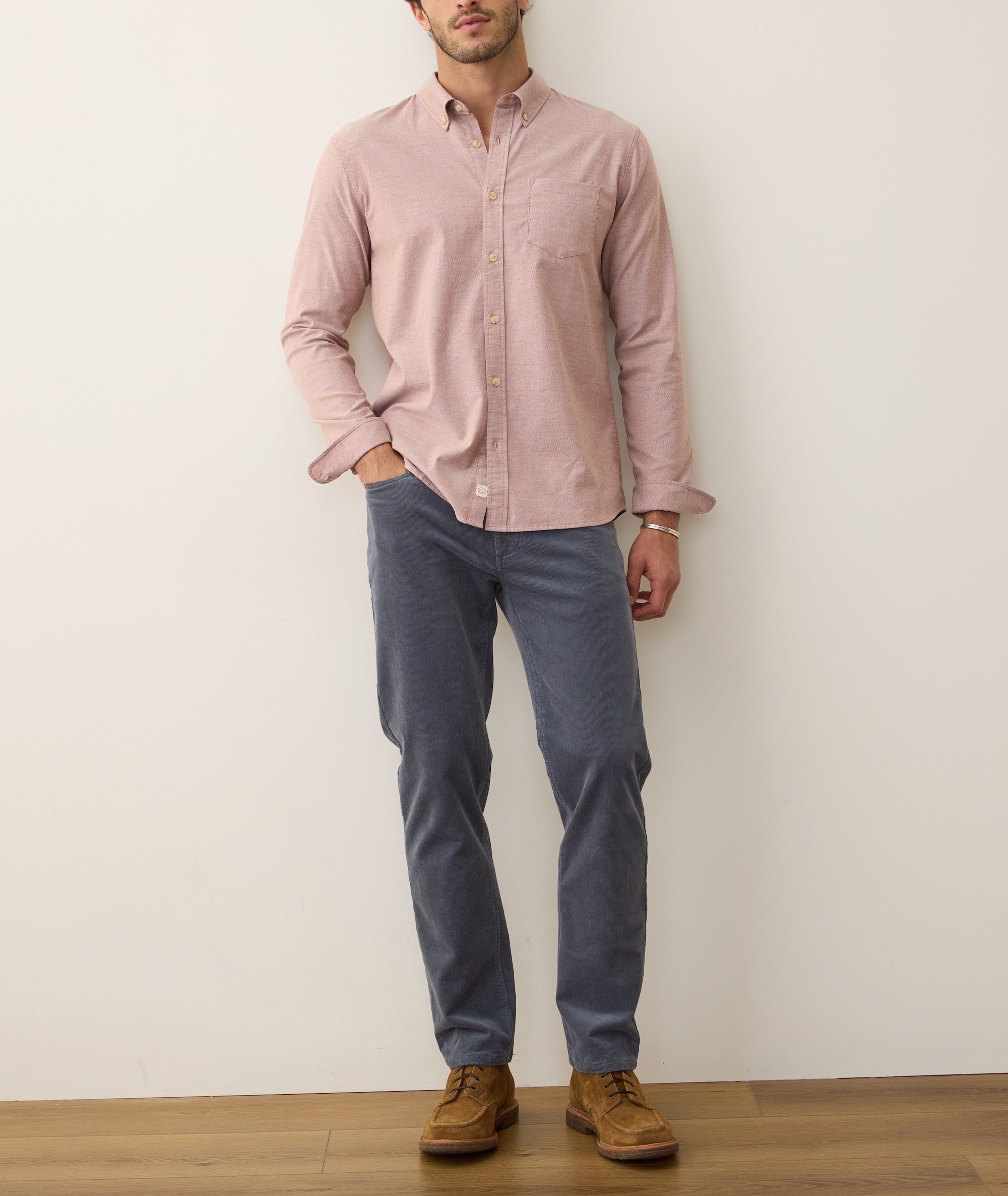 This is our laid-back take on the essential men’s button down. We brushed the fabric to make it even softer to the touch, and wove it with enough stretch to keep you from getting bound up. Works tucked, untucked, or thrown on the beach while you jump in the ocean.