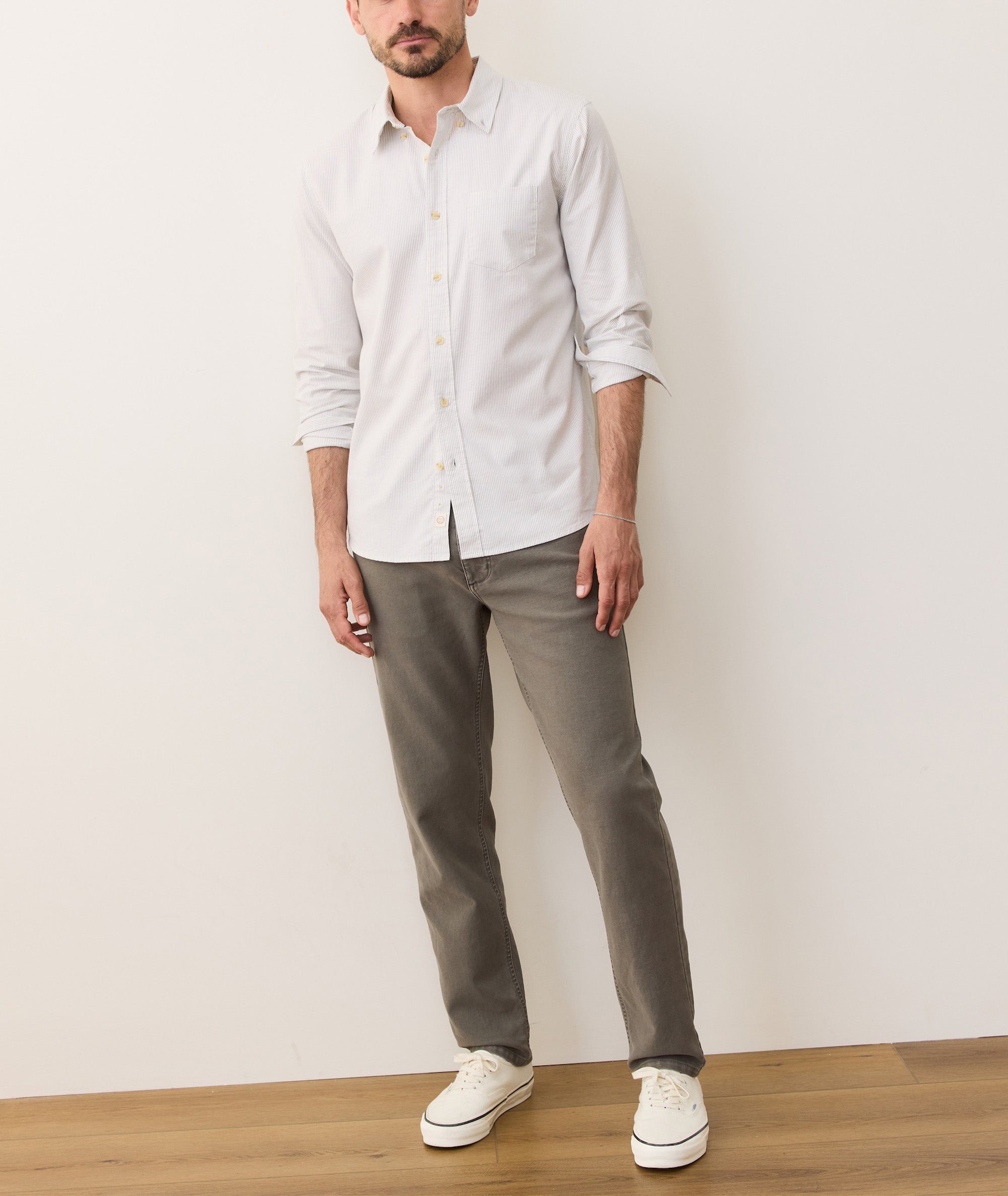 Cotton and Spandex team up to create this absurdly comfortable, never-stiff fabric that's been peached for extra softness. Perfection.