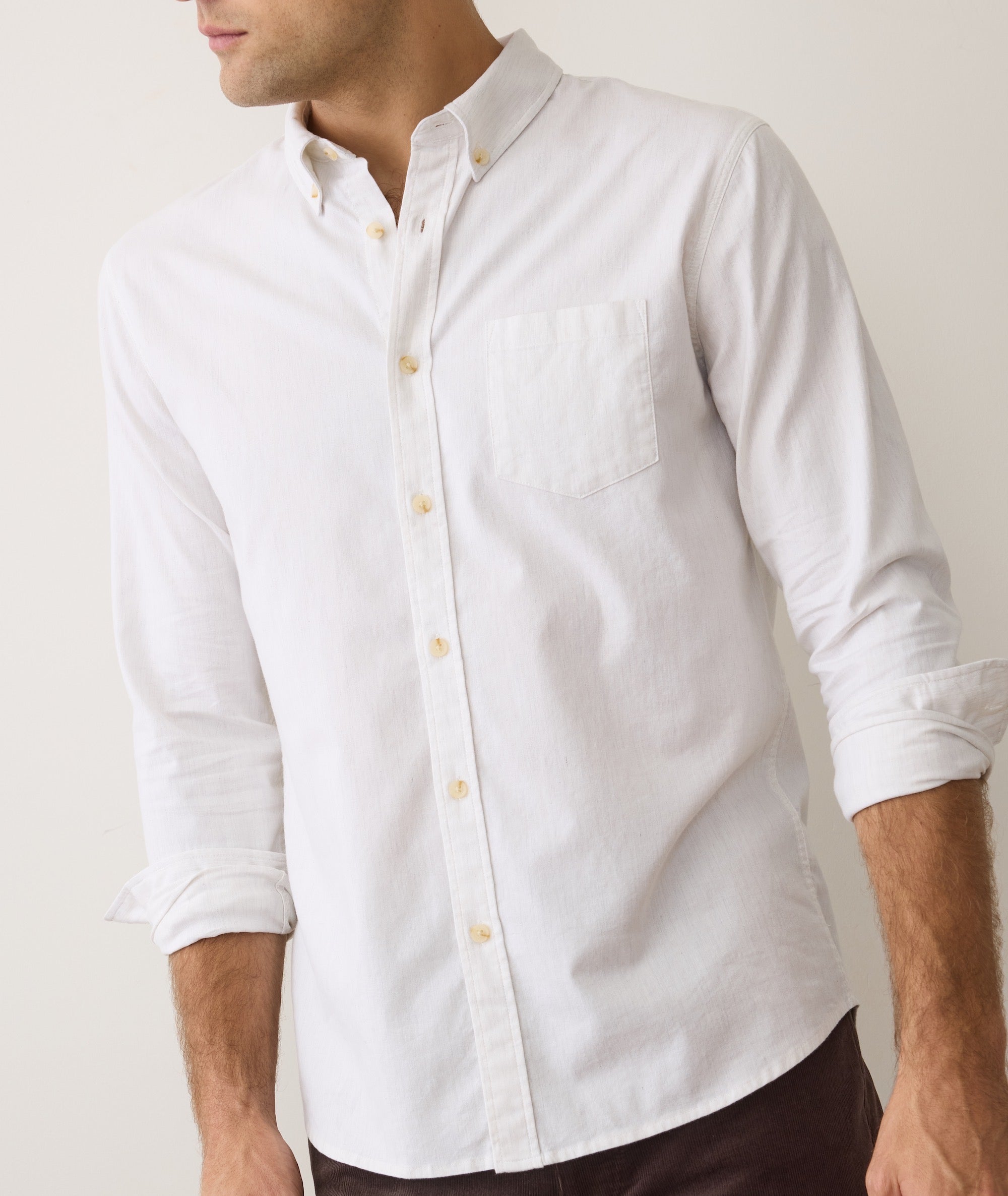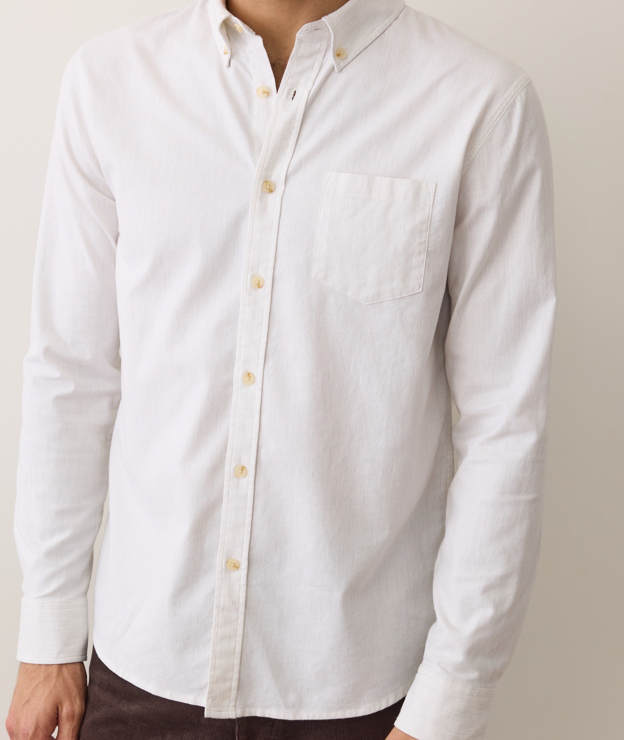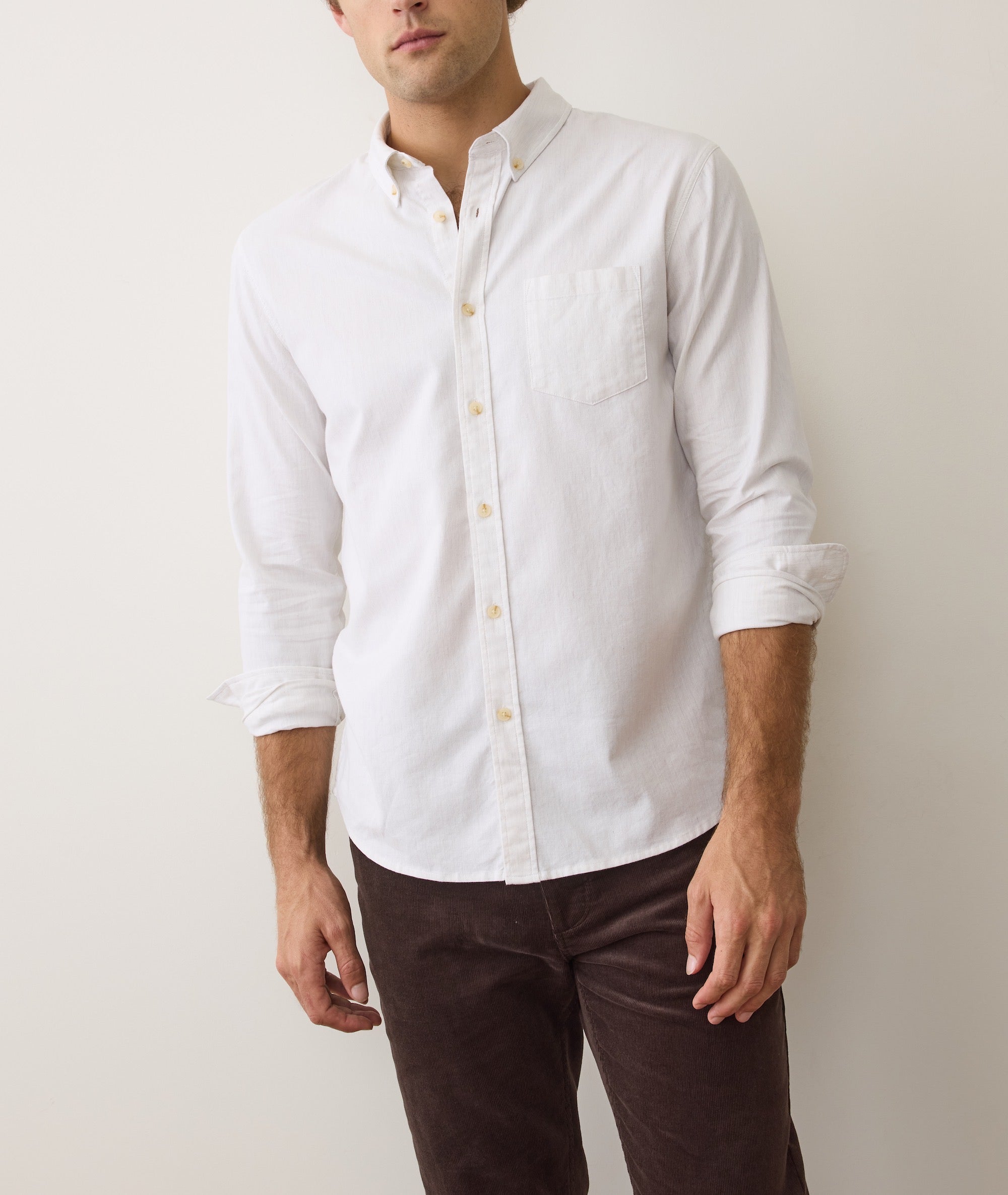 This is our laid-back take on the essential men's button down. We brushed the fabric to make it even softer to the touch, and wove it with enough stretch to keep you from getting bound up. Works tucked, untucked, or thrown on the beach while you jump in the ocean.