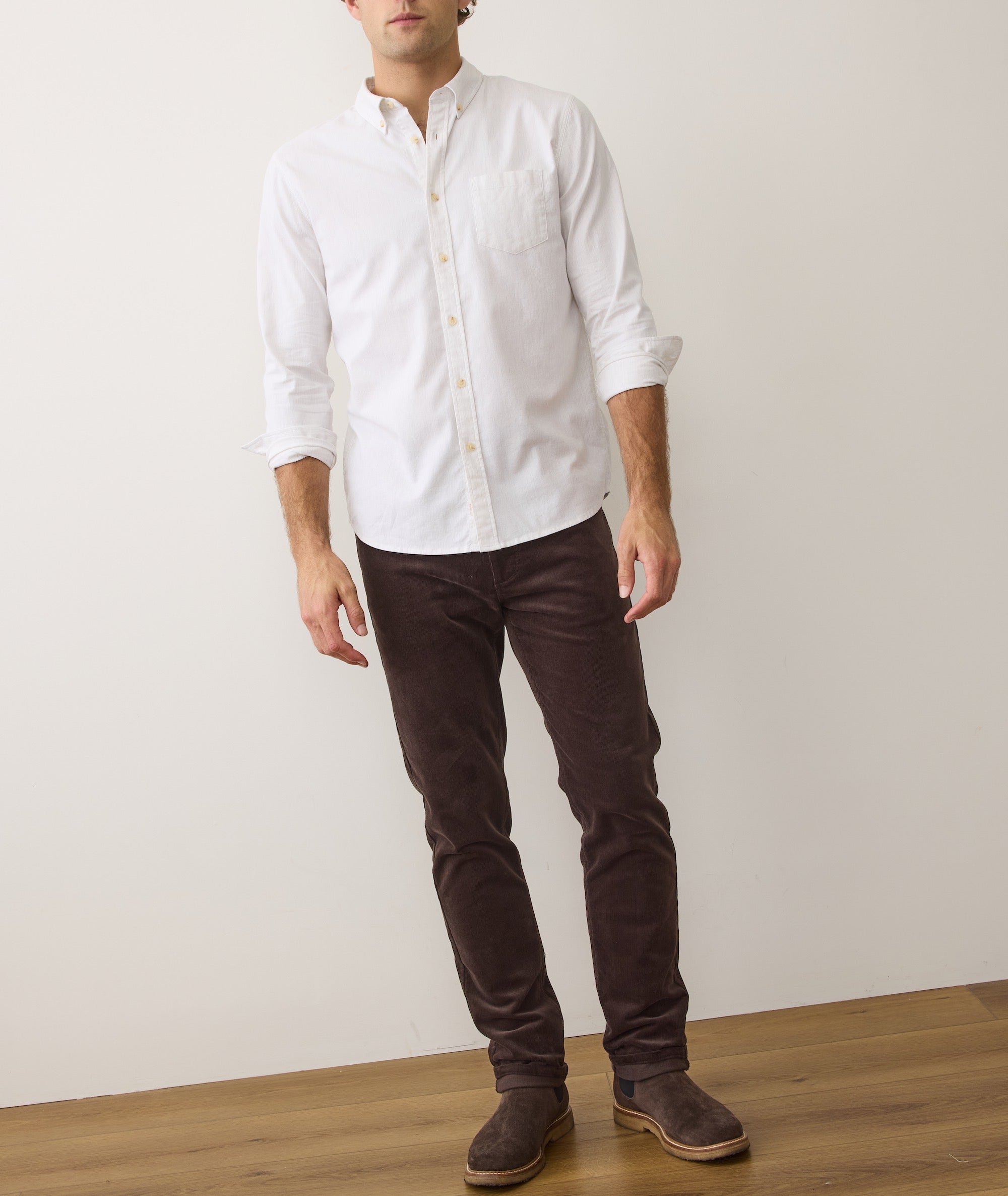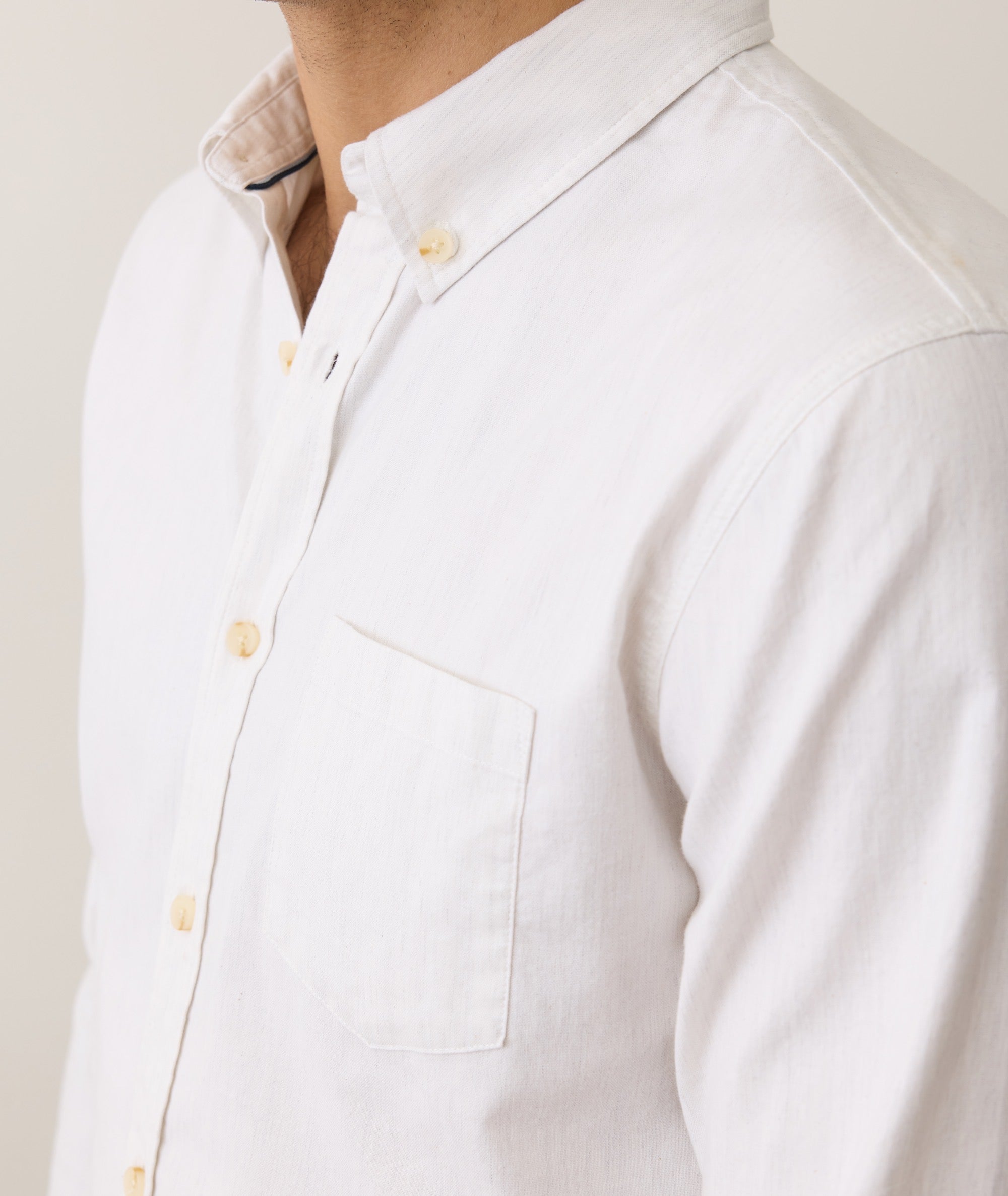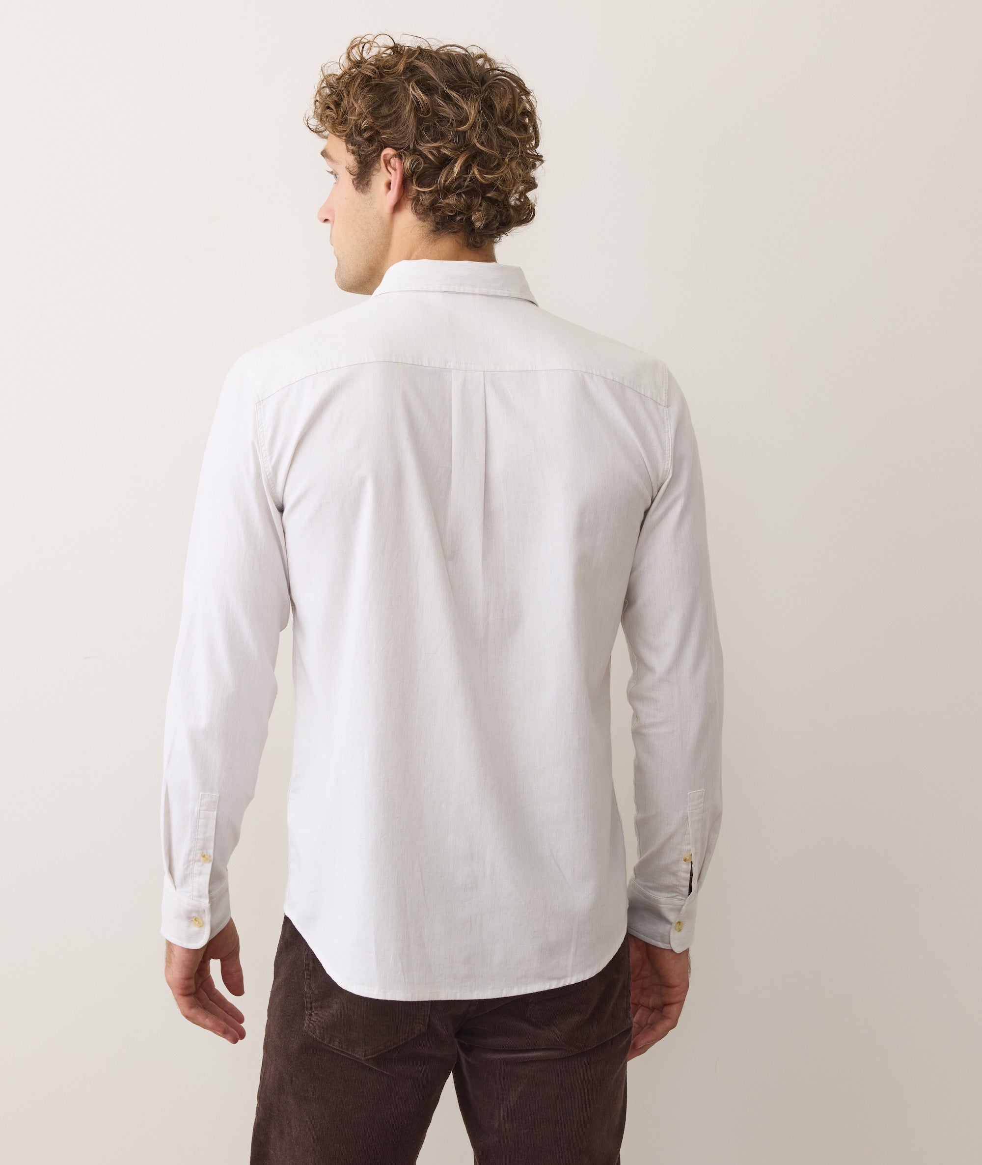 This is our laid-back take on the essential men's button down. We brushed the fabric to make it even softer to the touch, and wove it with enough stretch to keep you from getting bound up. Works tucked, untucked, or thrown on the beach while you jump in the ocean.