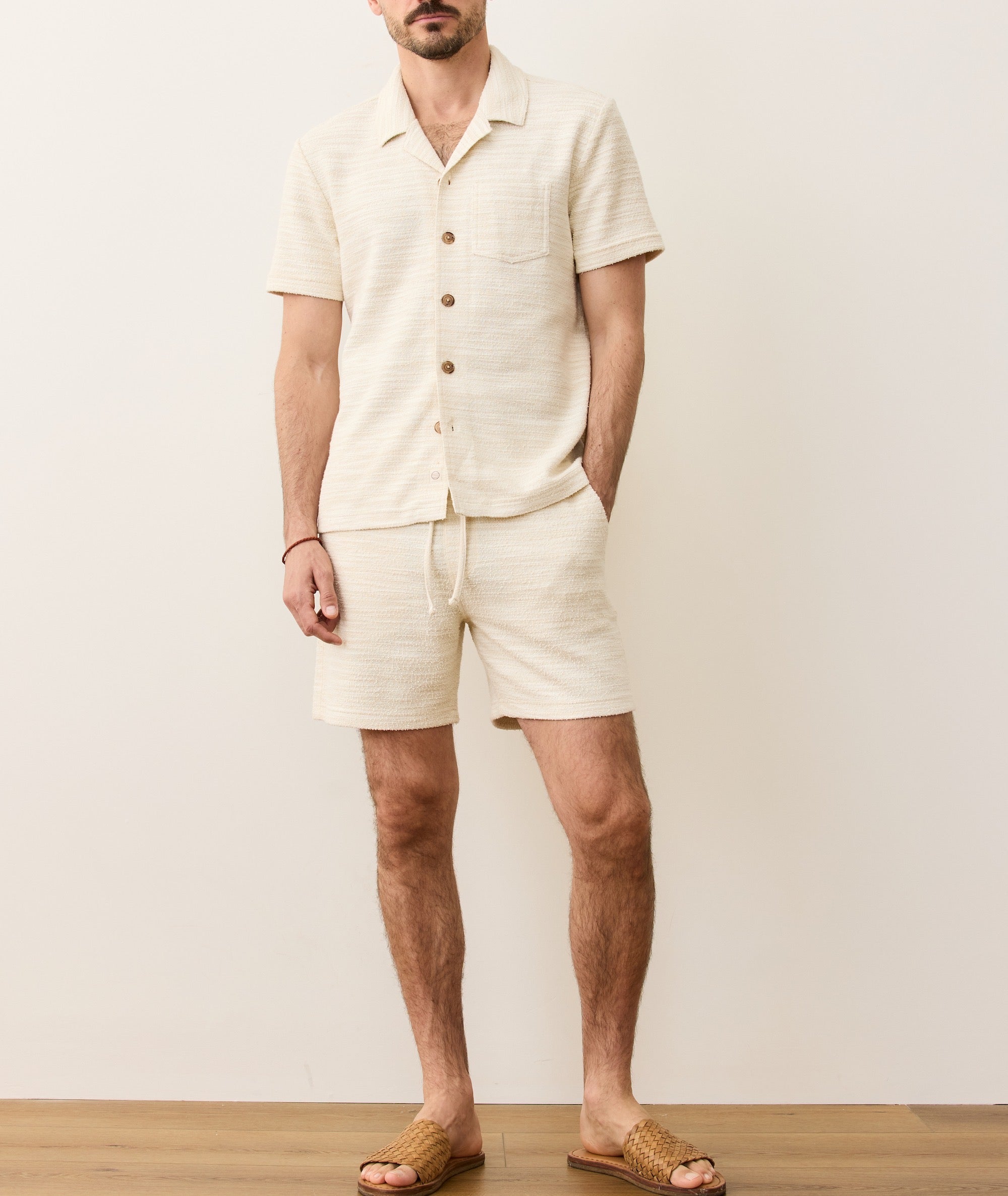 You’re going to have to feel these shorts to believe them. They're both amazing soft and deeply textured, like the nicest pair of sweat-shorts you've ever felt—but still classy enough to get compliments from across the pool party. They've got a wildly comfortable drawstring waist, roomy pockets, and even a matching top in the Cam Jacquard Resort Shirt. Wear both together for a matching set that says, "Yeah, I like to party."
