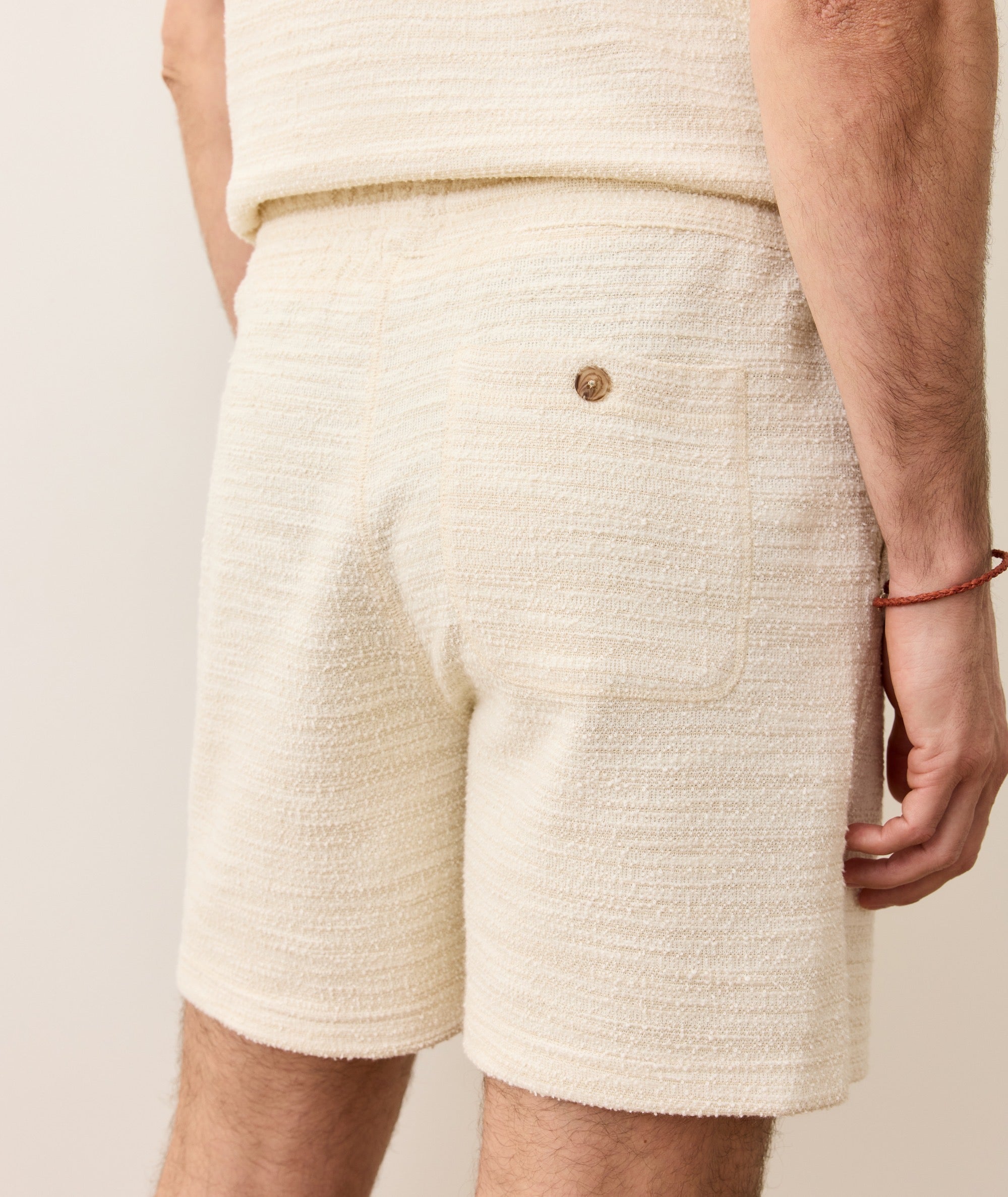 That’s not a trick of the eye, this jacquard short has the design woven right into the fabric. Feels deeply textured and medium weight.