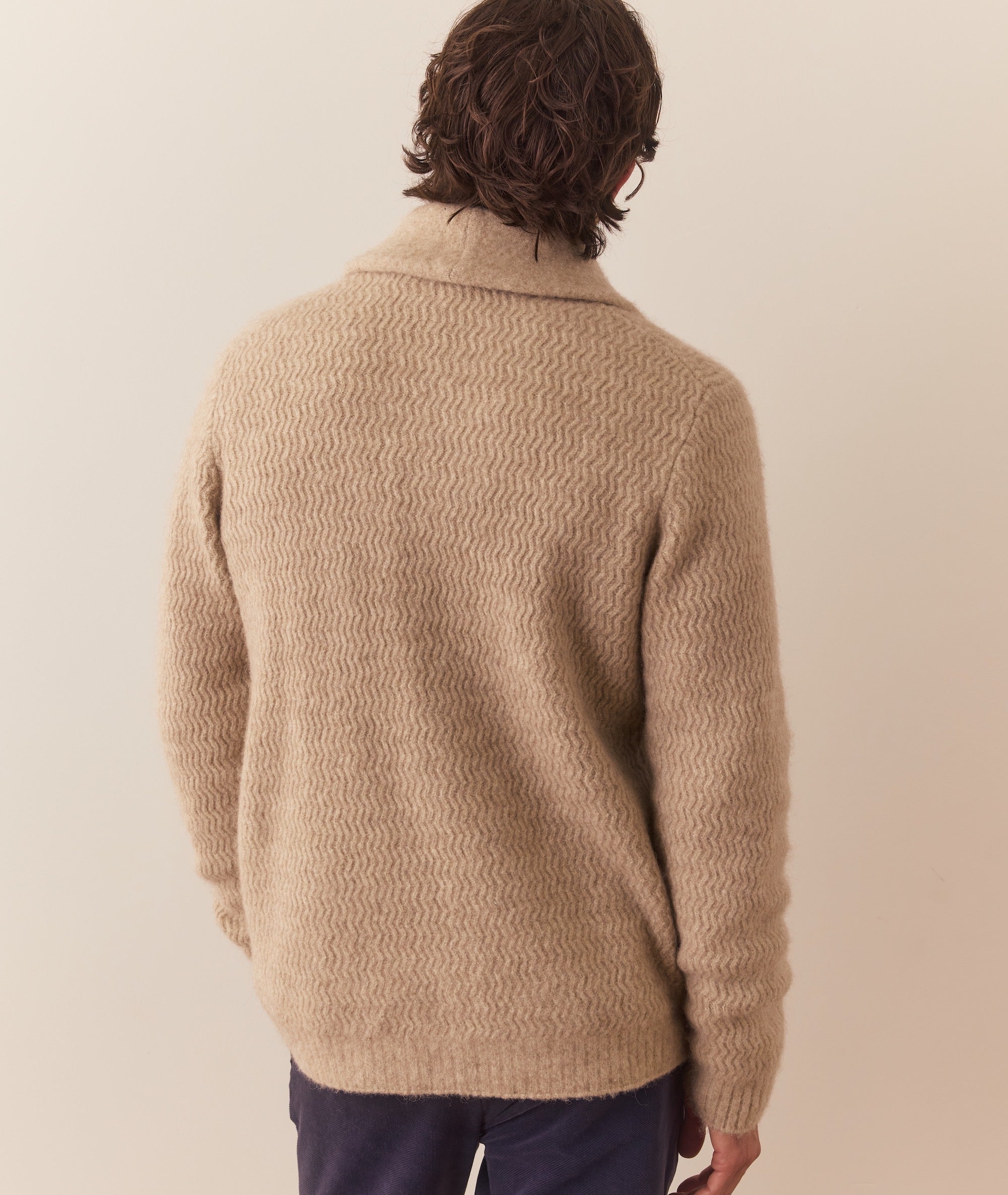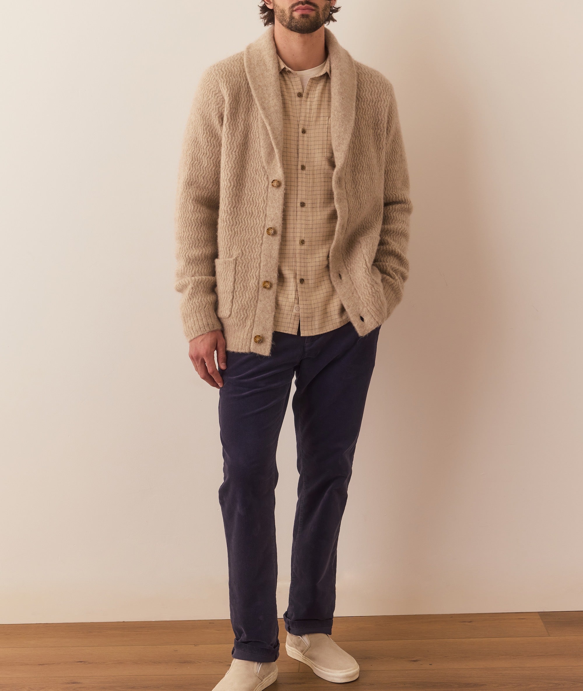 We were inspired by the French Alps to create a line of sweaters that felt premium, and like something you'd wear at the chalet after a day on the slopes. So here they are — the Chamonix knits, AKA the newest members of our absurdly soft sweater family. Made from a luxurious knit of Yak, Merino Wool, and Alpaca — they're somehow softer and more breathable than cashmere. This cardigan is topped off with a gently textured, herringbone body and a relaxed fit. Plus, it kinda makes you look like you own a second home in the Alps, naturally.