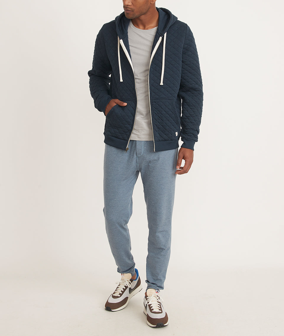 Men's Corbet Quilted Full Zip Hoodie in Navy Heather