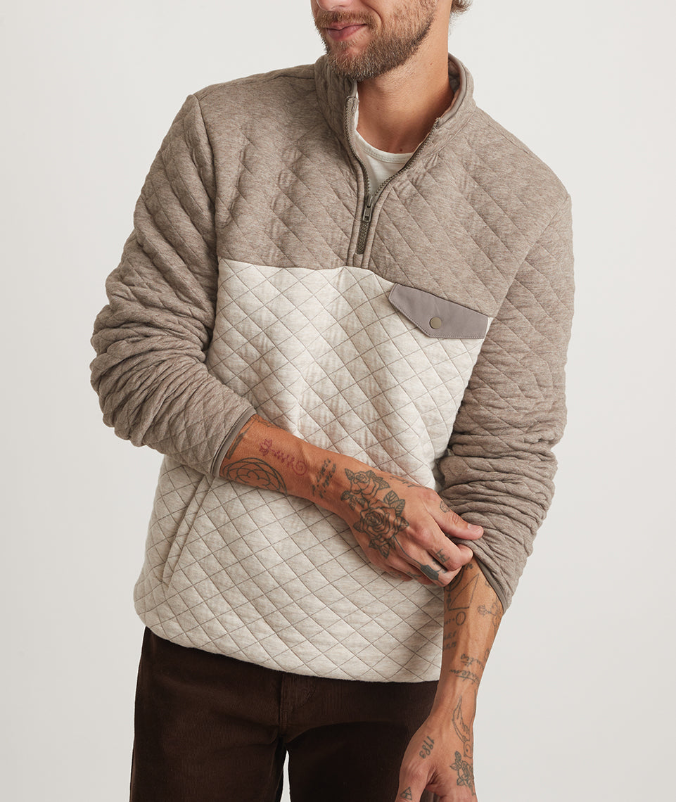We're constantly tweaking our bestselling fabric to make it the best it can be — this Corbet fabric is perfectly midweight (so you can wear it for more seasons). Featuring superfine top-dyed melange yarn, which is spun into our quilted fabric then knit together. Next, we fill the middle to make it extra warm (and not bulky).