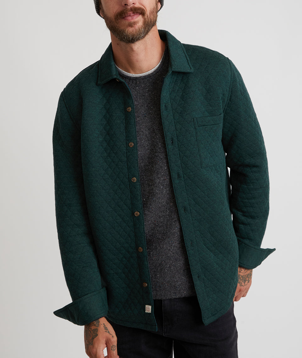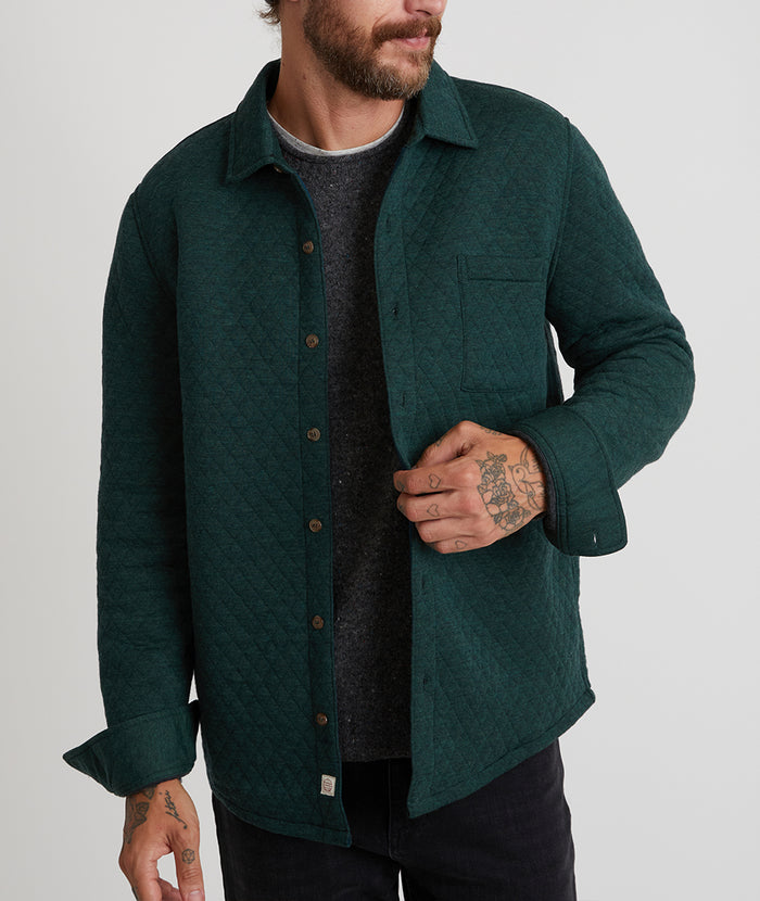 We're using the same fabric we use for our Corbets (two absurdly soft pieces of fabric, filled, and quilted) but we made it a bit heavier so you can wear it as a jacket-type thing. We also gave it a different color inside, so you can show a little contrast color depending on how you roll (... up your sleeves).