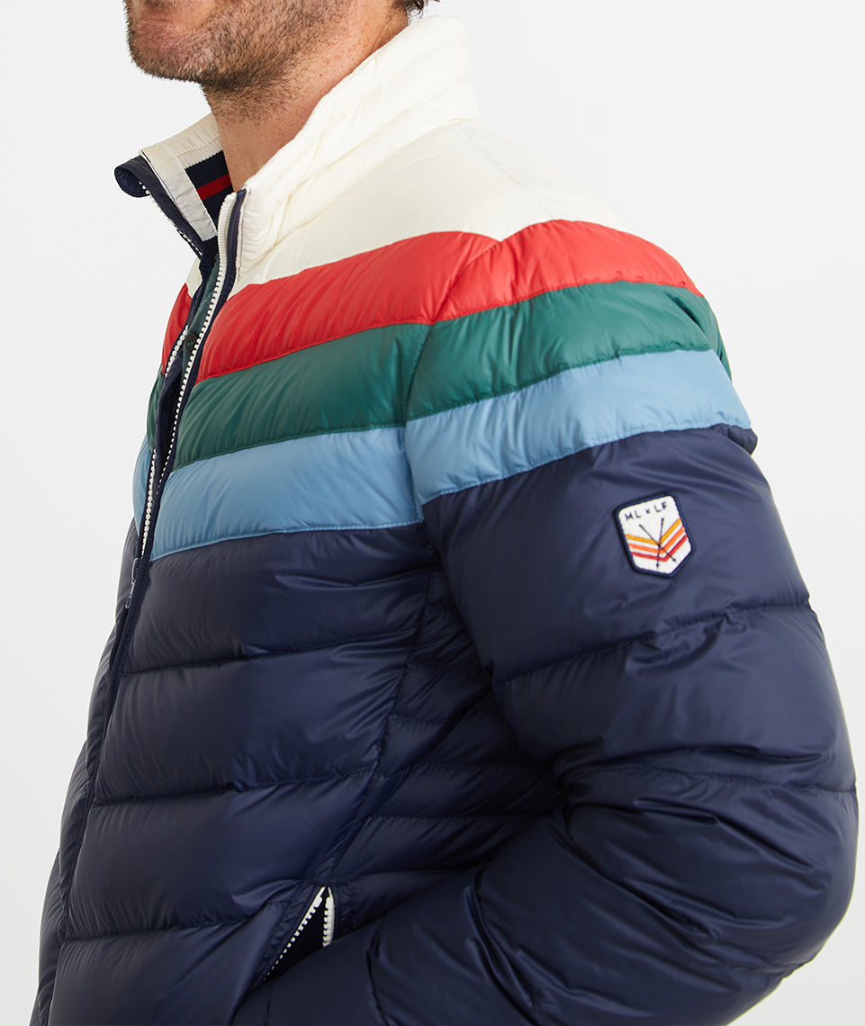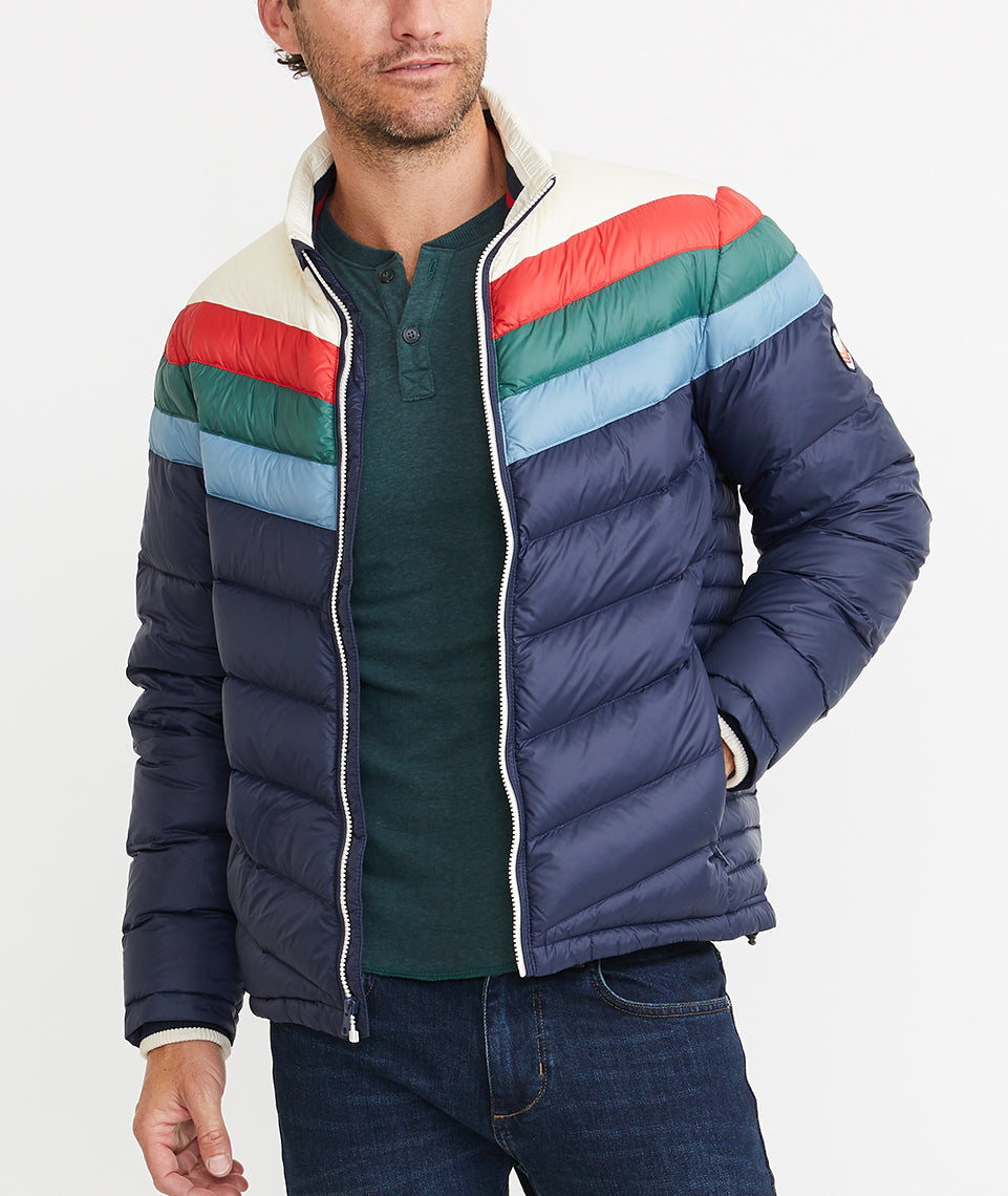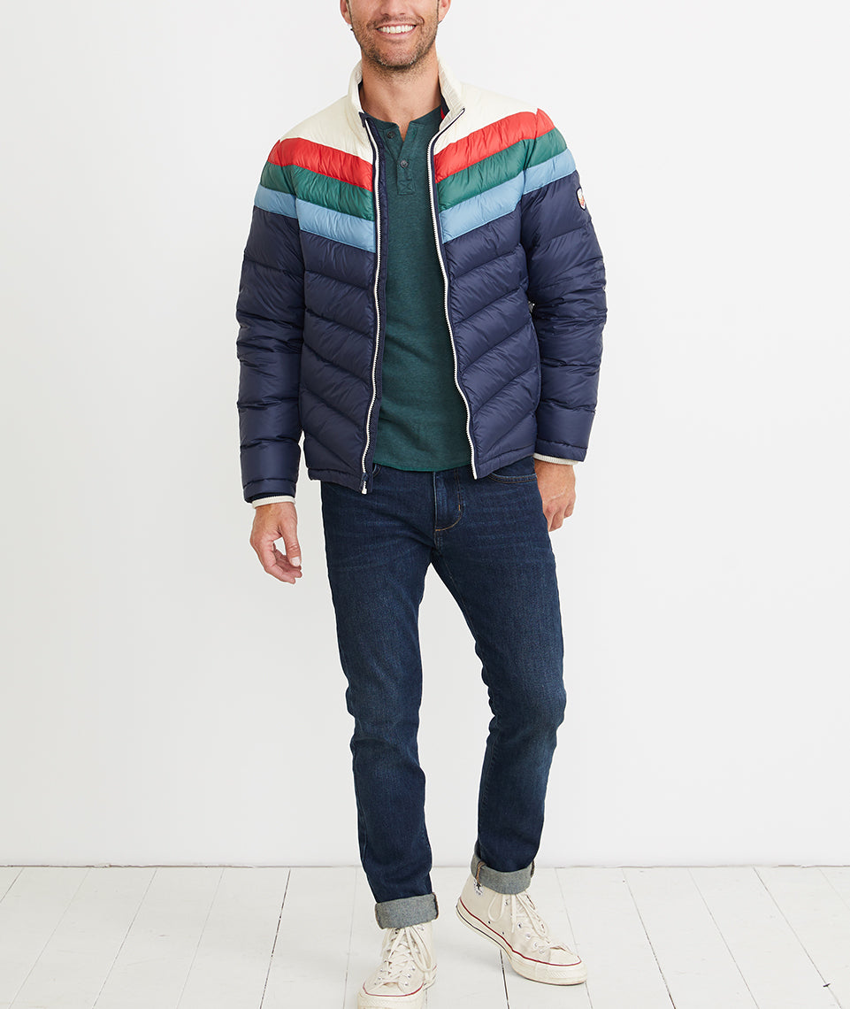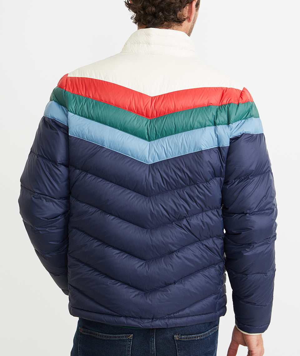 Nylon shell filled with humanitarian down that's been certified by the Responsible Down Standard. Custom-designed for maximum warmth. Plus ribbed fabric on the collar and cuffs to keep your softest skin (aka your neck and wrist) comfortable and warm.