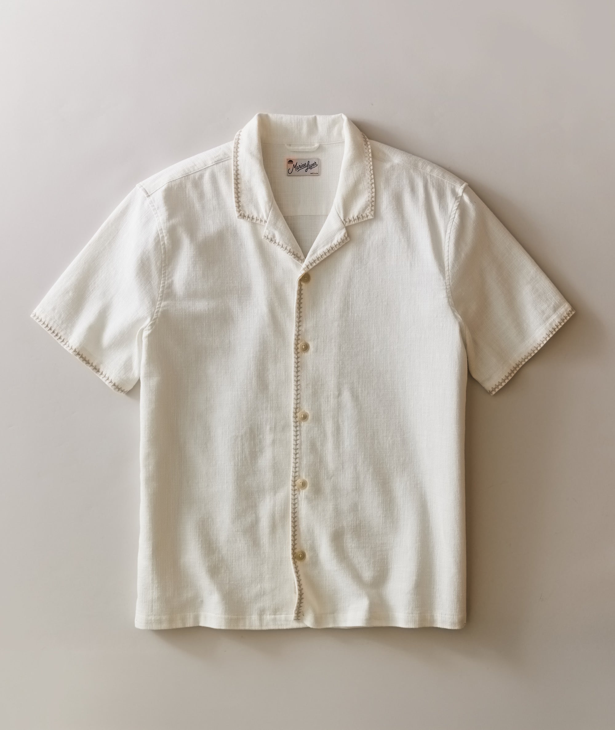 Embroidery is in right now, and this is probably the easiest way for guys to get into wearing it. Made with a slightly textured cotton in classic resort white, it has subtle diamond embroidery on the collar, placket, and sleeves that elevate the whole look. Which is exactly what we were going for.