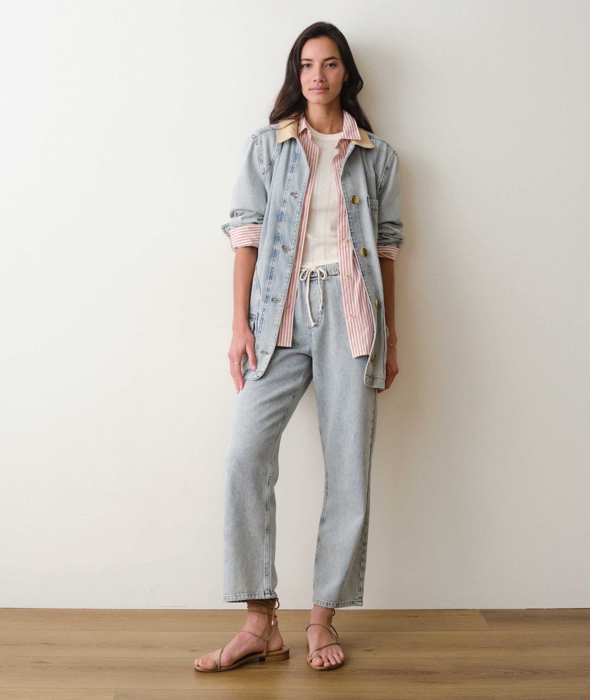 Introducing the newest jacket in our lineup: a perfect lightweight barn jacket you can layer all the way until summer. It's got a stylish oversized fit, updated pocket details that are cute but still authentic, and a contrast canvas collar that gives you a little extra pop. And no, you don't have to do any actual barn work in it.