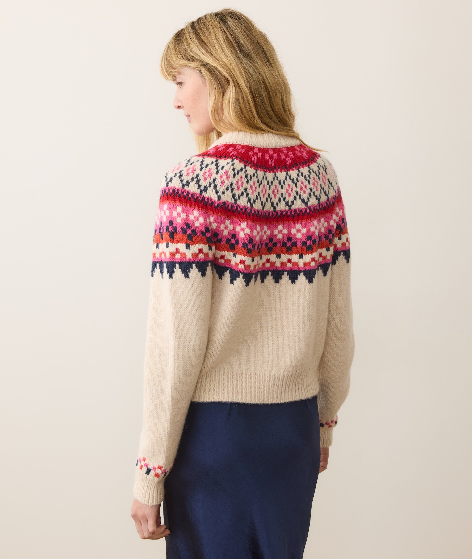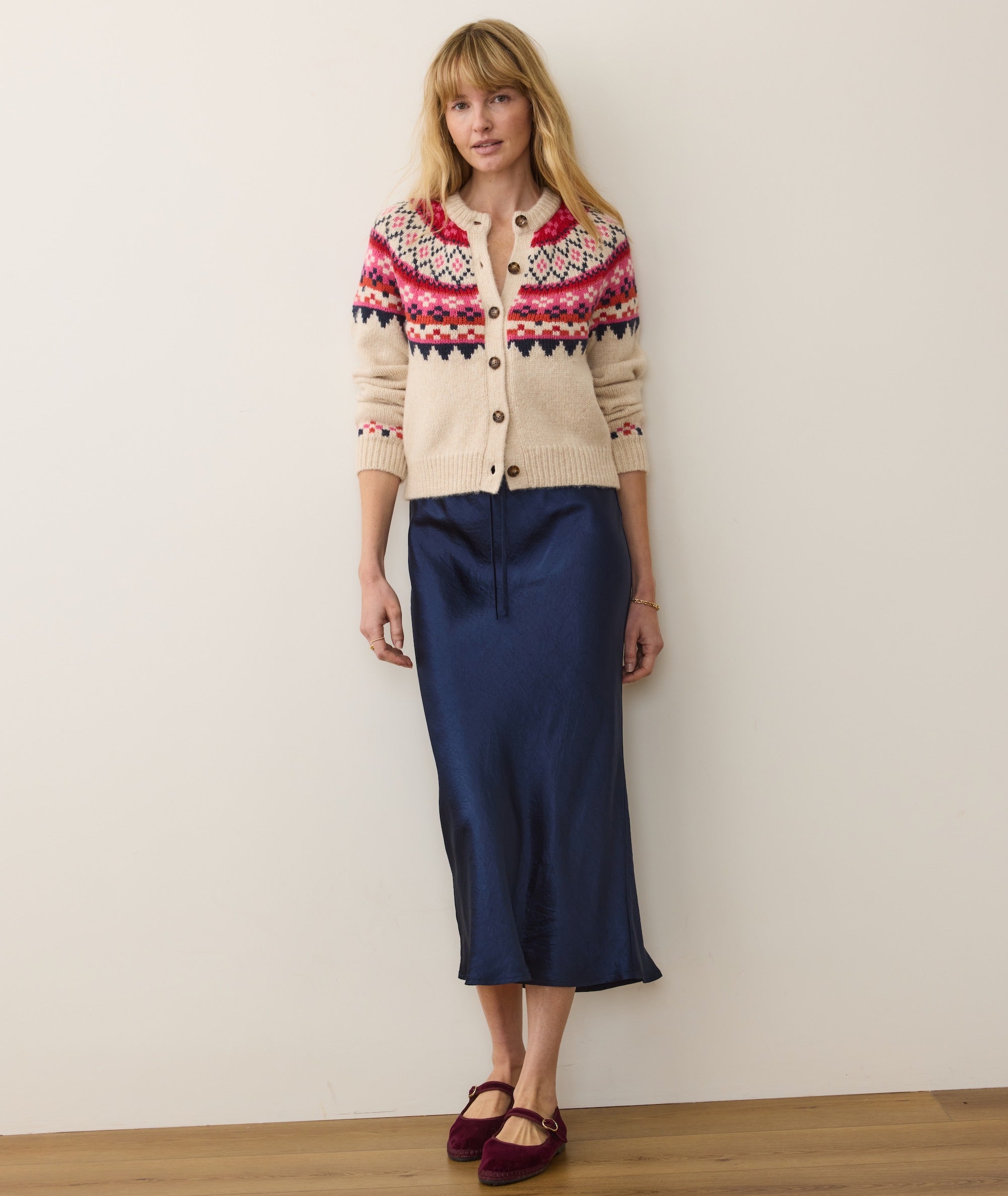 If you love a Fair Isle sweater, but want a few more styling options? This cardigan is your girl. She has an easy relaxed fit, but a high hip length to keep things from feeling oversized. With the new colors this year, we're including a first-ever true neutral in gray. Did we mention there are matching hats for all the colors? There are matching hats.