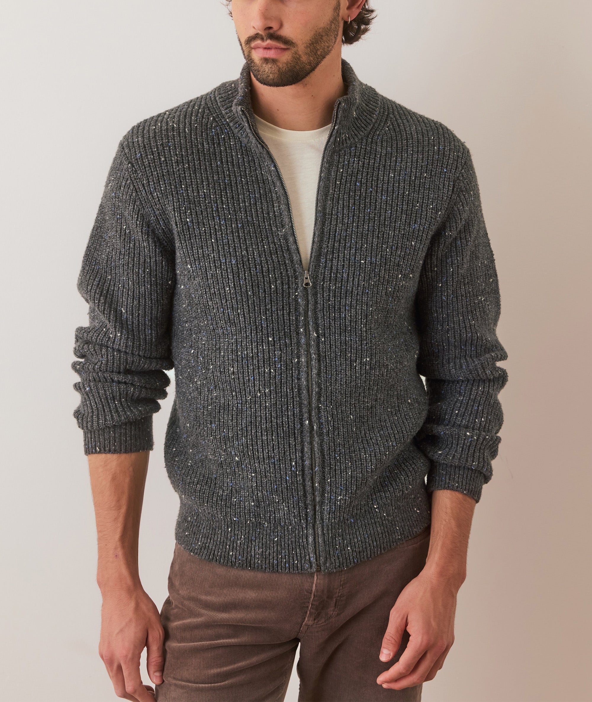 Say hello to your new go-to for looking sharp this season, inspired by the rugged charm of Inverness in the Scottish Highlands. This sweater jacket brings that timeless, elevated style with a fisherman stitch and just the right amount of festive neps. It’s got a full zip closure, a cozy mock neck, and ribbing on the hems to keep things polished. Whether you’re headed to a holiday party or want to channel those Highlands vibes in your everyday look, this one’s got you covered in warmth, style, and a touch of Scottish heritage.