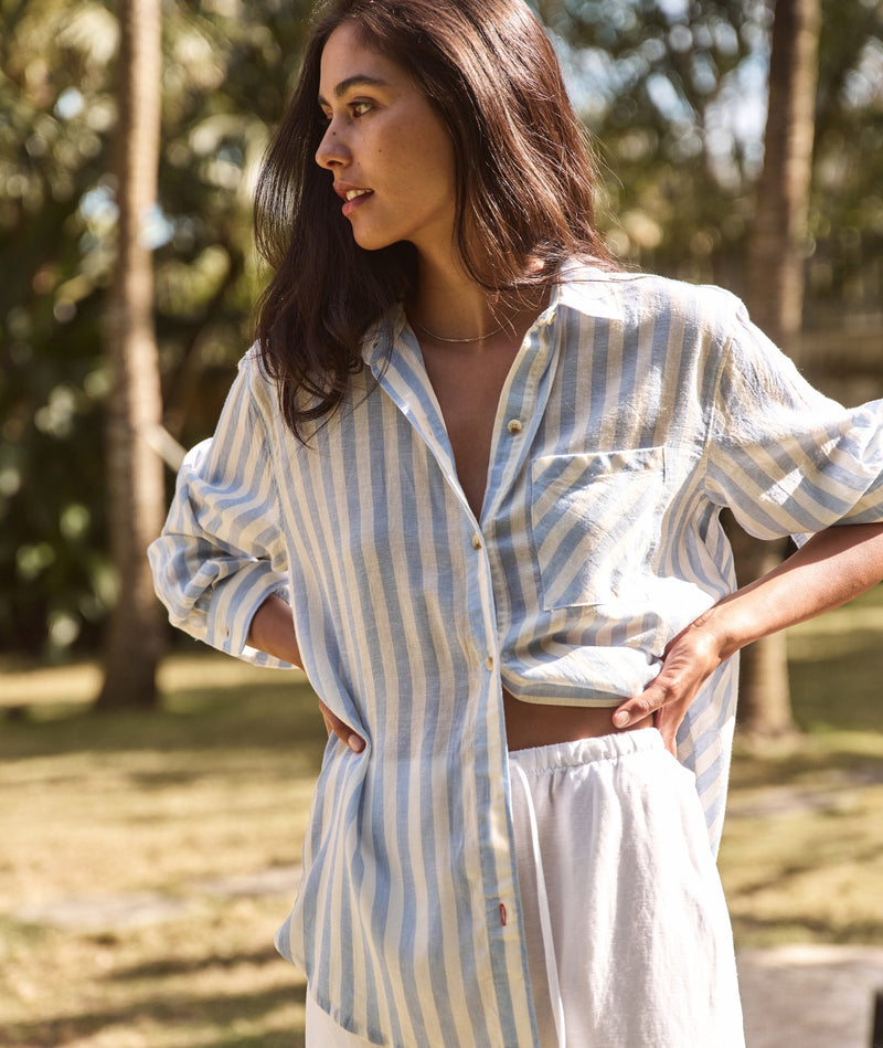 A feminine take on a menswear shirt, this drapey, slightly oversized woven will be your new go-to. Gives you a "borrowed-from-the-boys" look without all the awkwardness that comes with stealing his shirt.