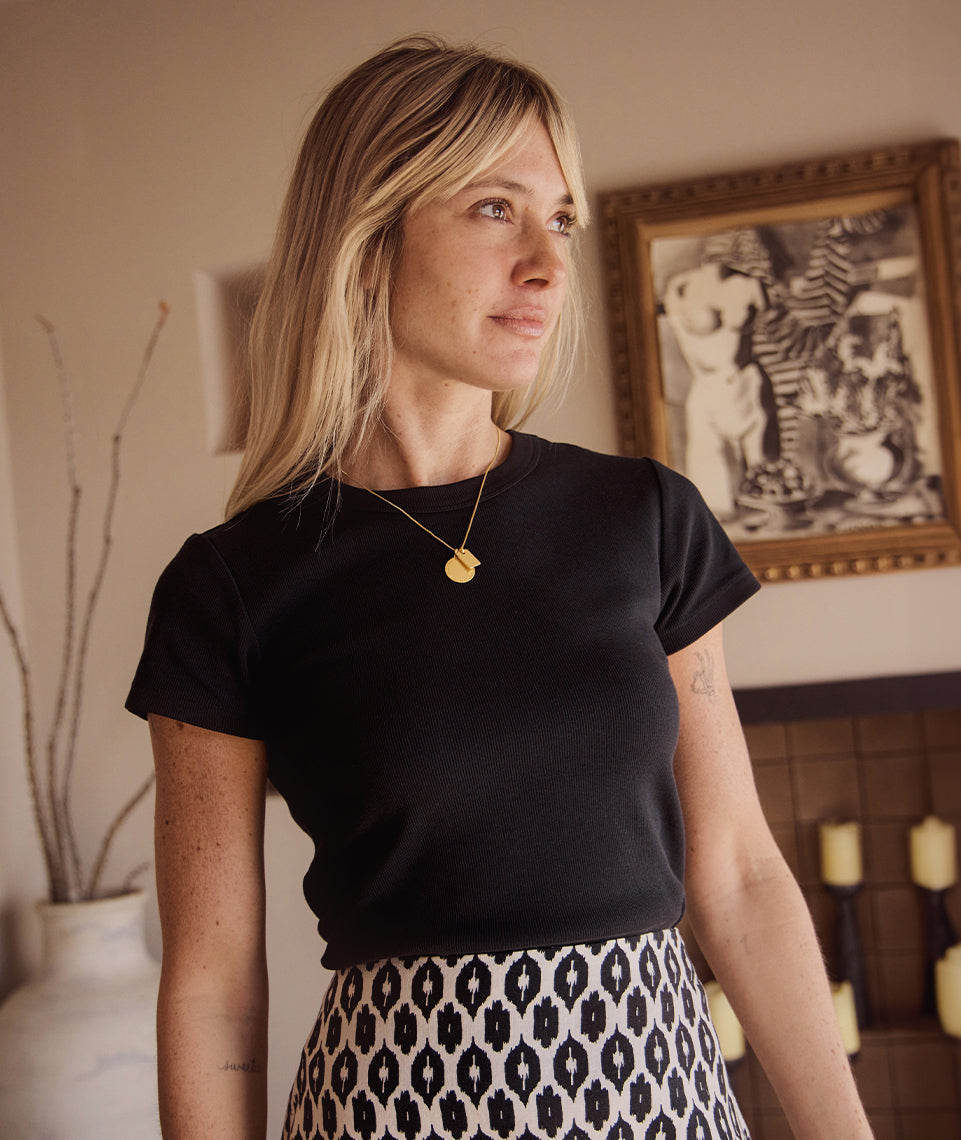 Meet the freshest take on our Lexi Rib fabric. This style has been garment dyed for a naturally sun-faded, broken-in look and feel. The fit? It's a perfect, slightly fitted version of a crew tee. (Think baby tee, but not as tight.) It's absurdly soft, comfortable, and has a great thick texture. Perfection? We'd like to think so.
