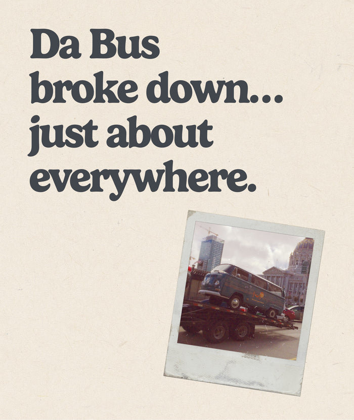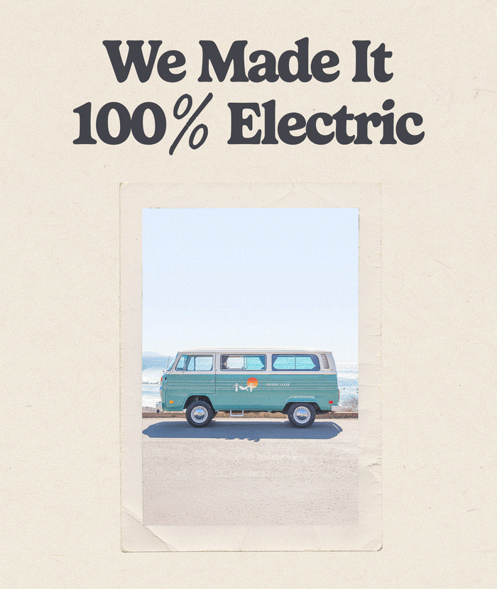 We can’t give everyone a ride in Da Bus, but this is the next best thing. We made it to celebrate the 100% electric rebirth of our ‘74 VW bus with our friends at Peace Vans. It’s a super soft graphic tee only for people in the club...which is really just anyone who buys it.