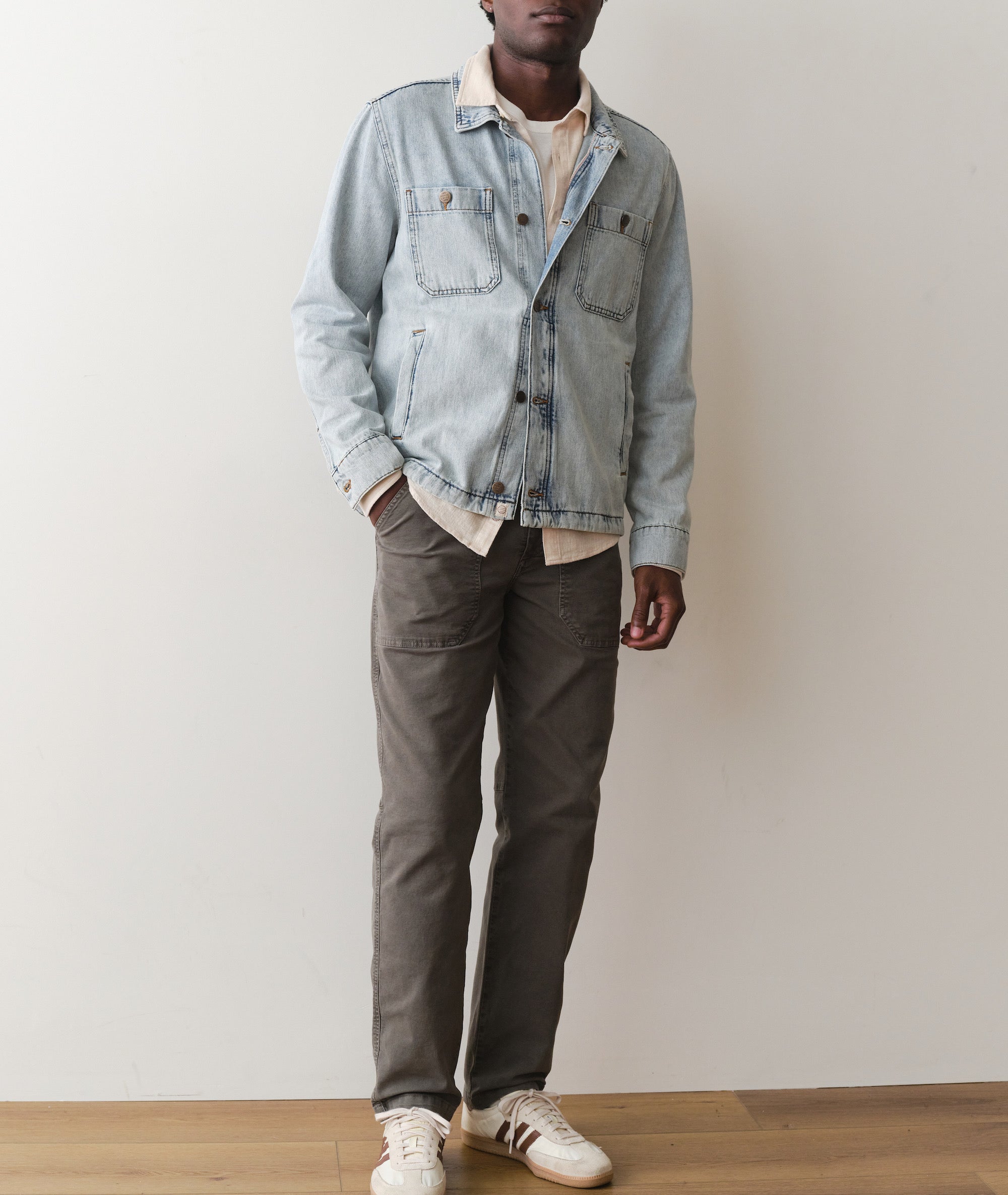 A 100% cotton denim: we're talking a light but hearty 365gsm. It's sturdy and a little rugged, but feels soft and broken-in from day one.
