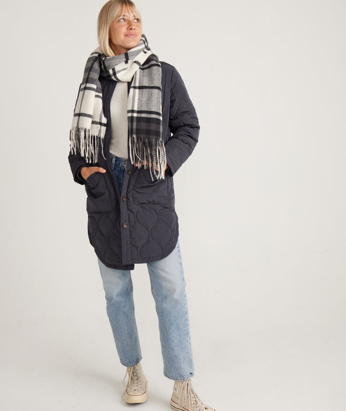 The great thing about scarves is that they're technically one-size-fits-all...which, as we all know, is the #1 factor for a great gift. Unique racking stitch detail and a plaid print make this a no-brainer for your gift list (or for yourself, honestly).
