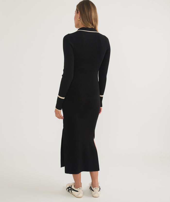 New style alert (!) AKA the sweater dress with lux appeal that’s actually comfortable. This knit dress is body-slimming without being tight (how!), has polo details and colorful tipping for added personality, and has side slits so you can walk. Pair it with boots or heels and you're ready to roll.