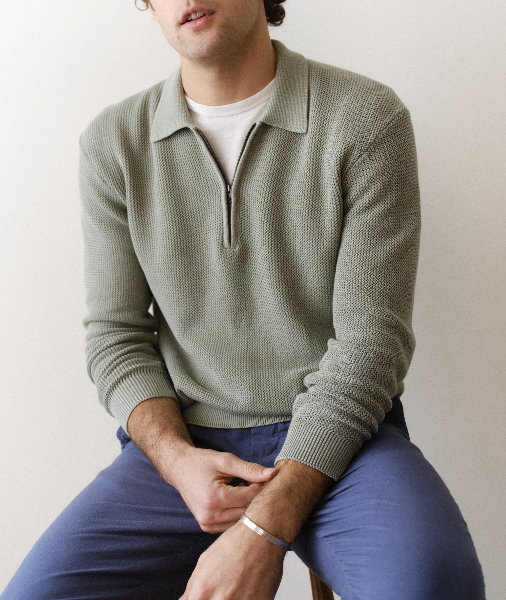 This sweater polo is never going to give you up, let you down, mess you around, or hurt you. It's got a buttery soft fabric, easy quarter zip neck, and a rick rack stitch that makes it your most interesting solid. Wear it on all those occasions where you need a collar, but also need to be wildly comfortable.