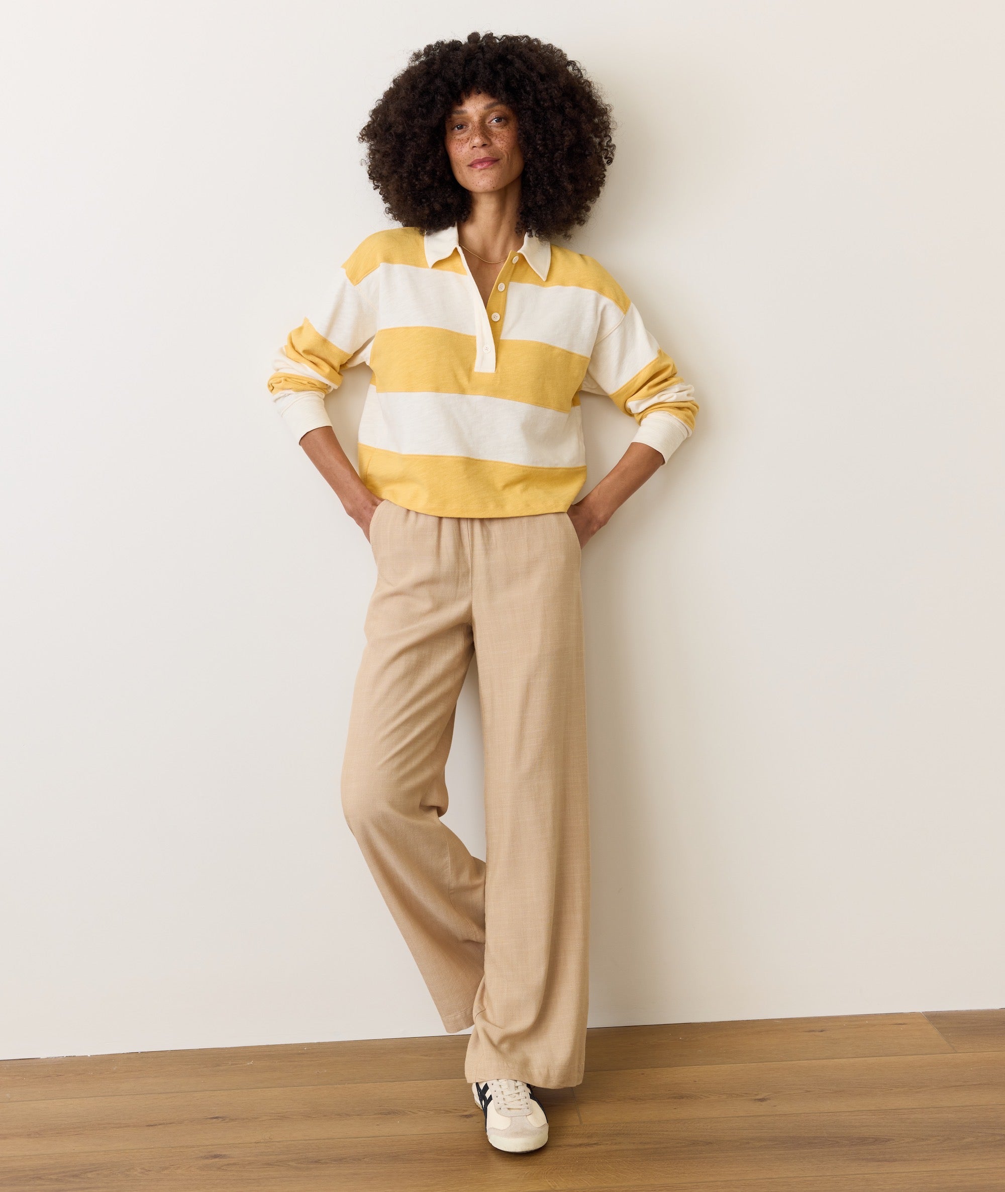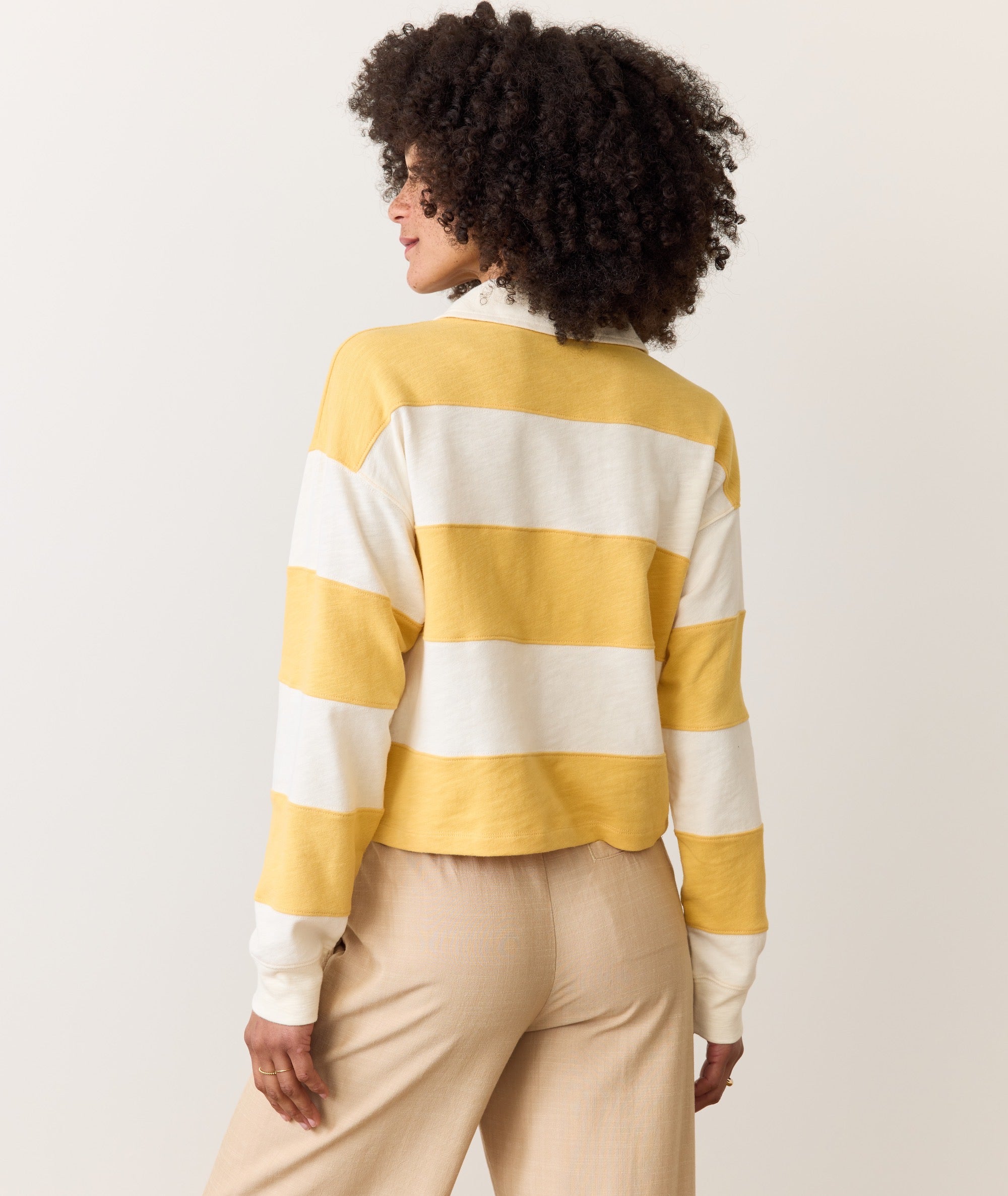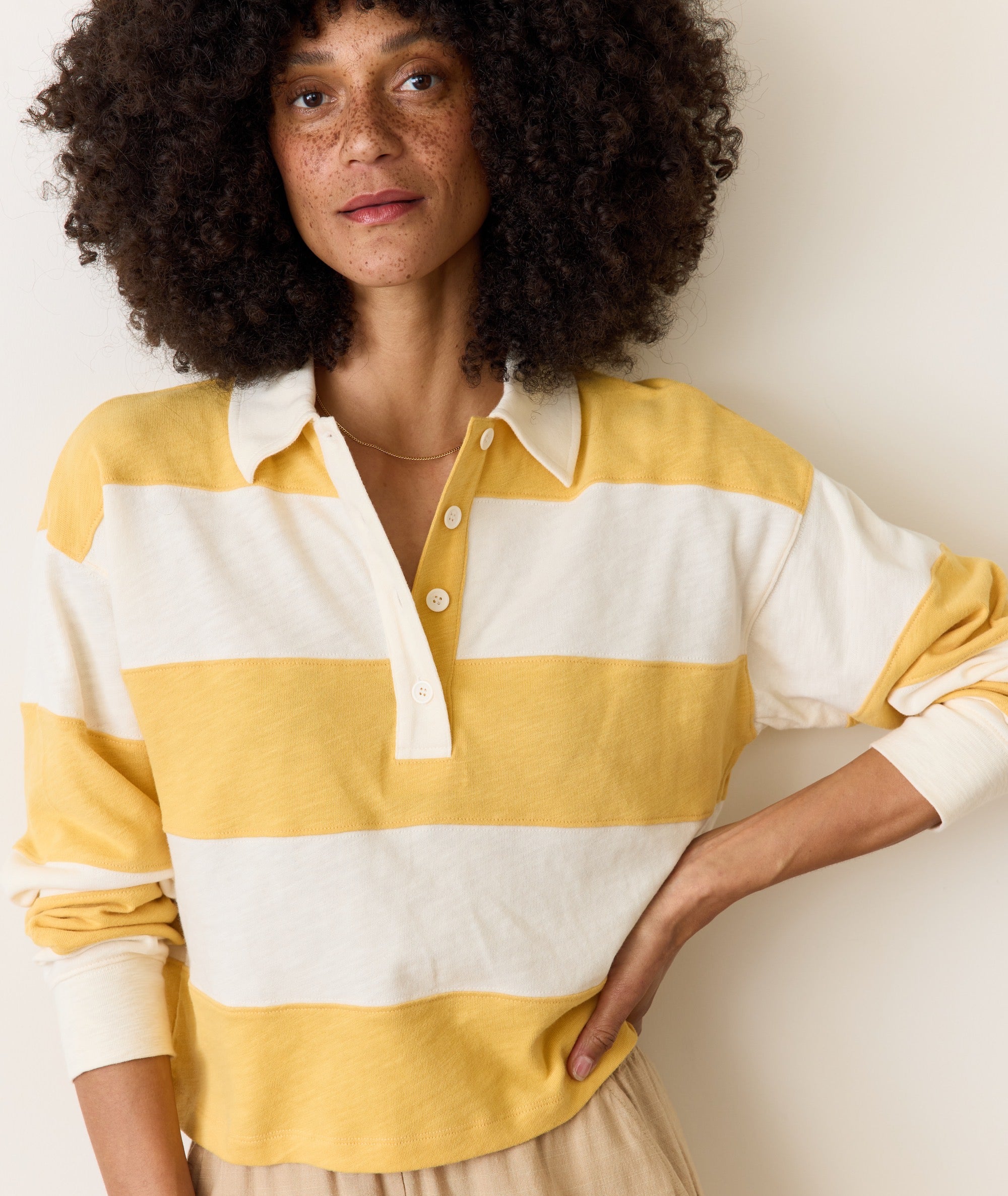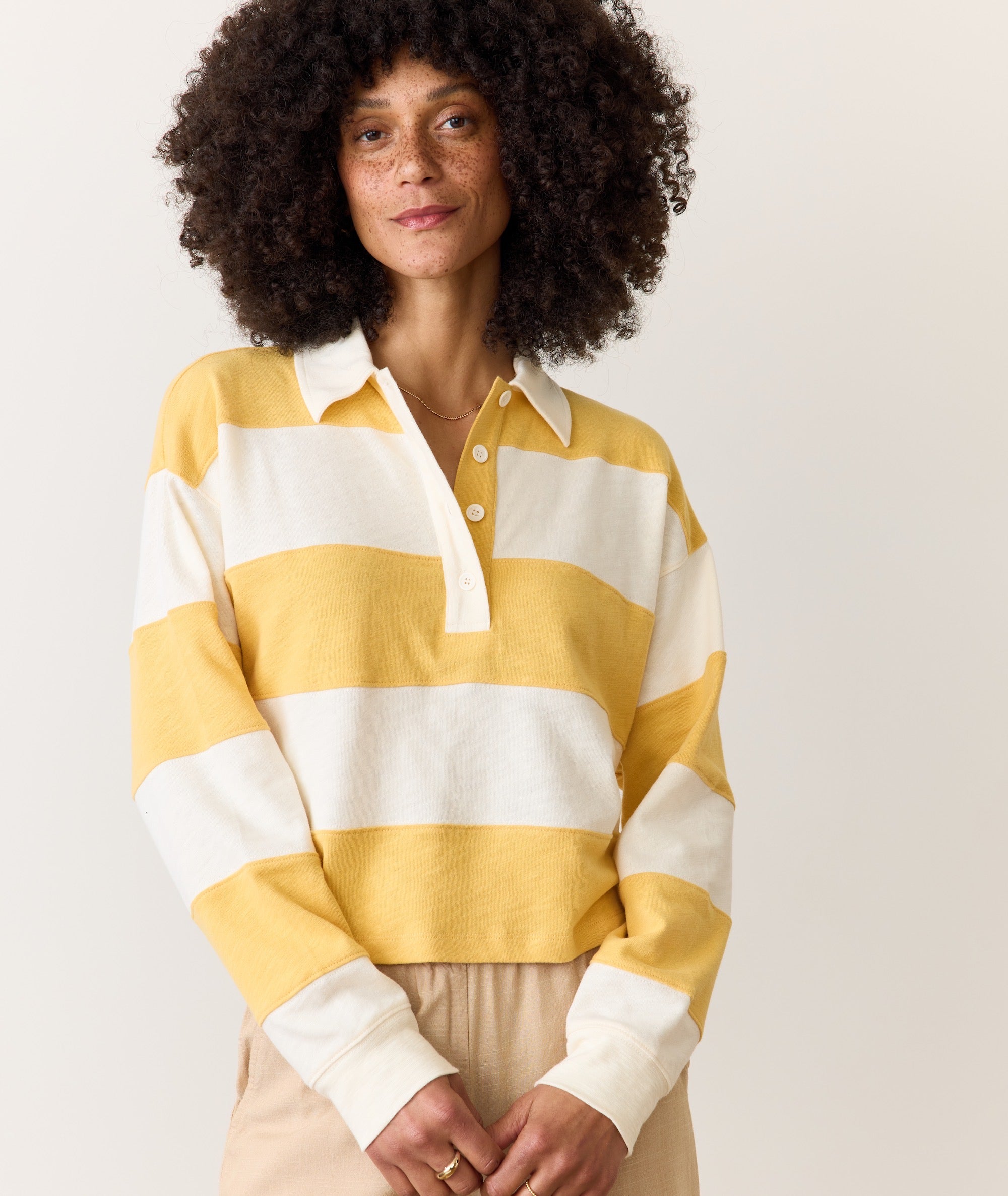 New style alert (!) Meet our newest Rugby Polo, crafted from heavy brushed jersey so it's absurdly soft and just warm enough. It sports a perfectly boxy, cropped fit, and polo details so you can be your own version of Ilona Maher.
