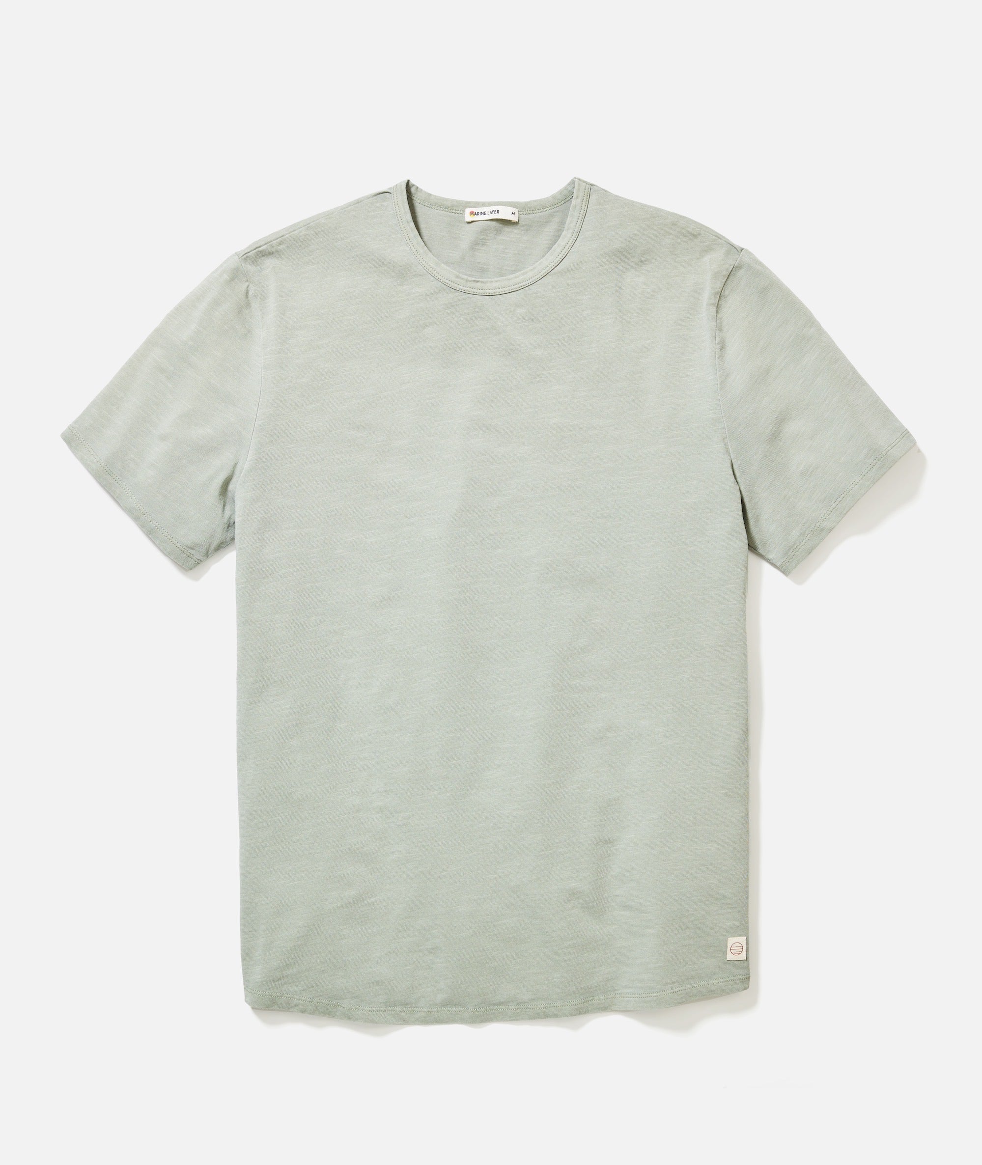 An updated take on our dressier tee fabric. Feels a little denser and drapier than our other tees thanks to some spandex in the weave.