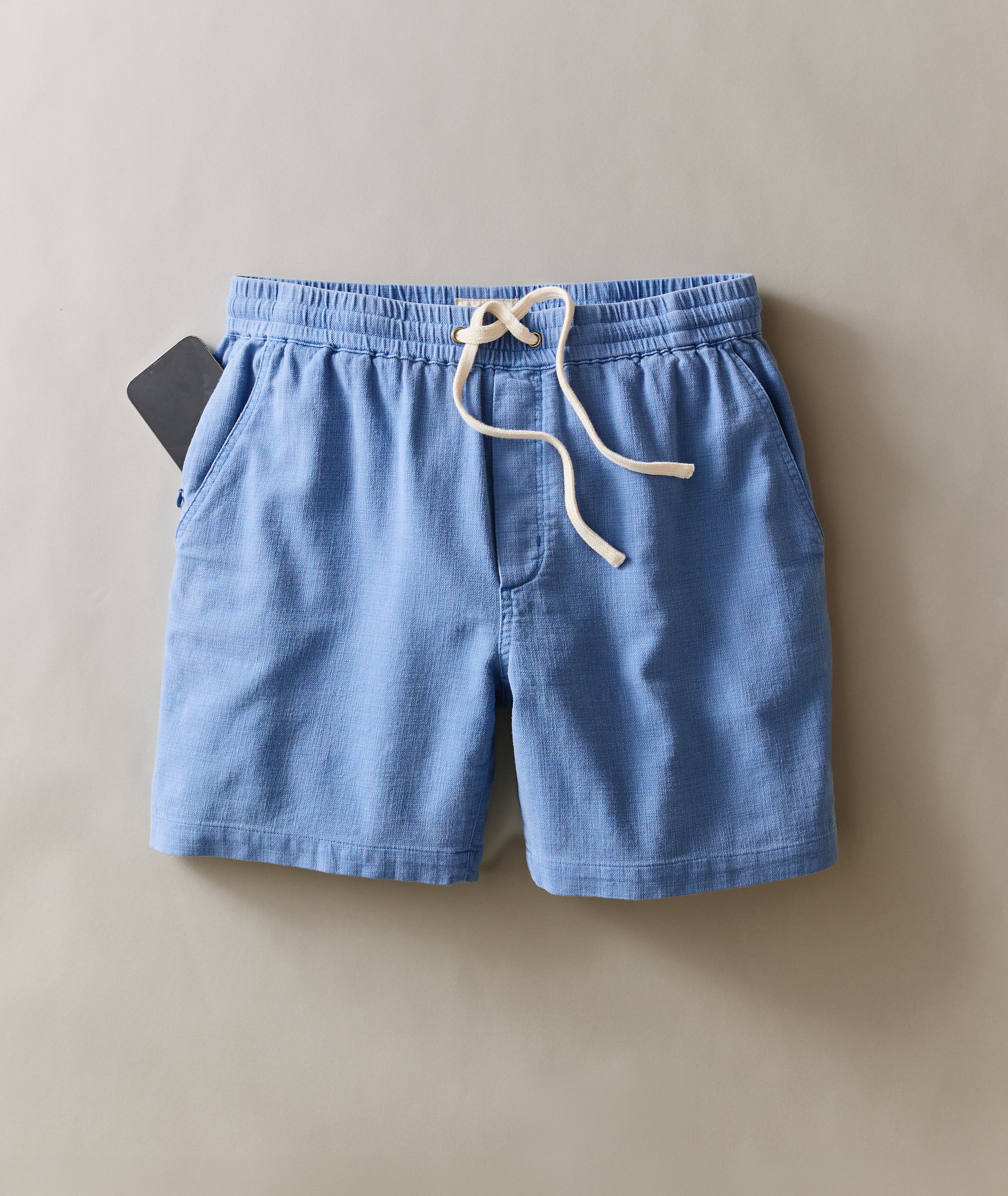 These shorts are everything you love about our two of our best sellers combined. They’ve got the extremely comfortable elastic waist of our Saturday pants, plus the slight flex and texture of our Stretch Selvage button downs and a new zipper phone pocket. We even gave them a just-short-enough 6-inch inseam to remind the world you’ve got some pretty nice thighs.