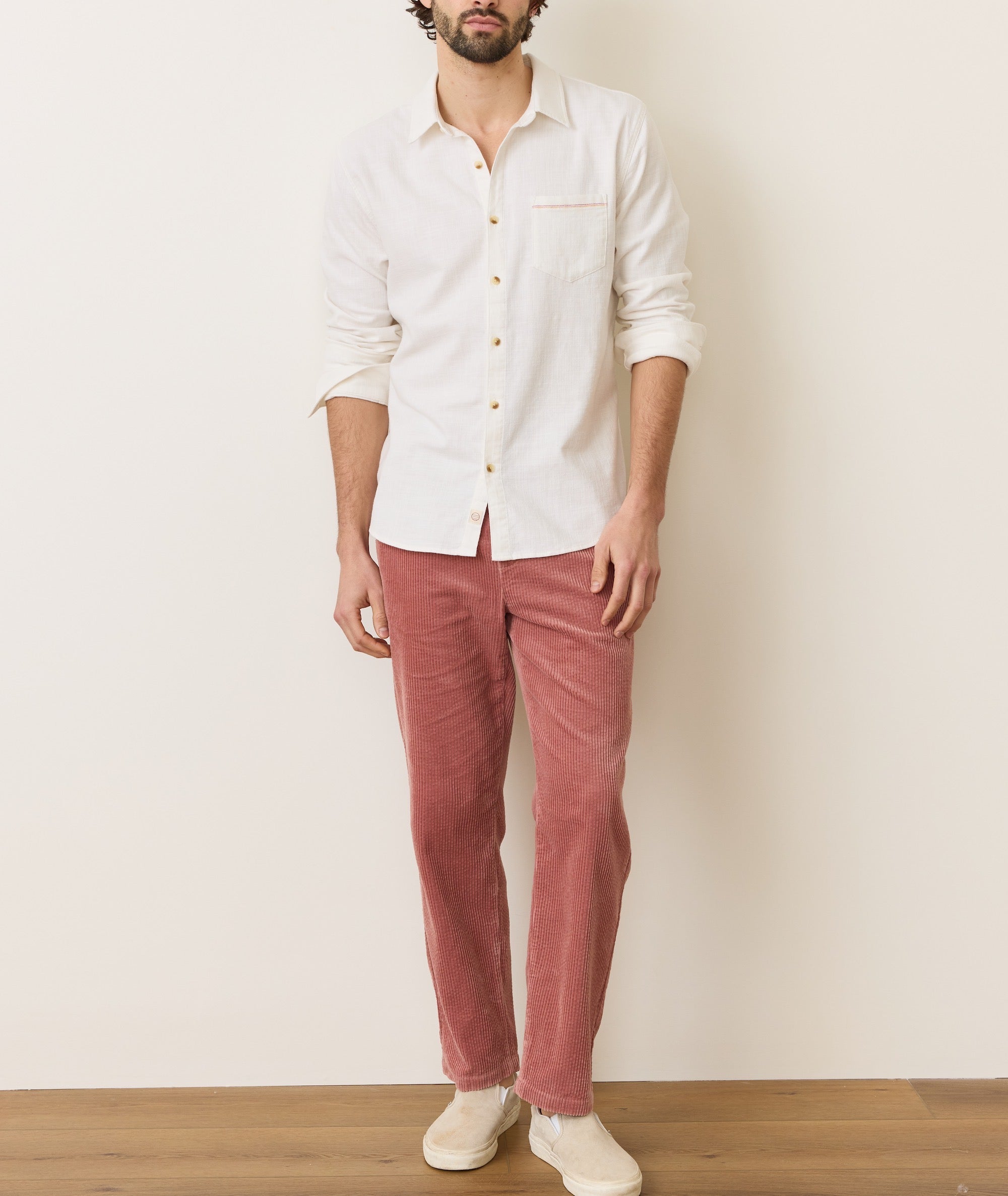 We took our bestselling selvage shirt (you know, the insanely comfortable one) and made it even more comfortable by adding stretch. This colorway is midweight, moves with you, and is long enough to tuck in (but you make the call). We updated this year's fit to be slightly trimmer than before, but the added stretch keeps it just as comfortable.