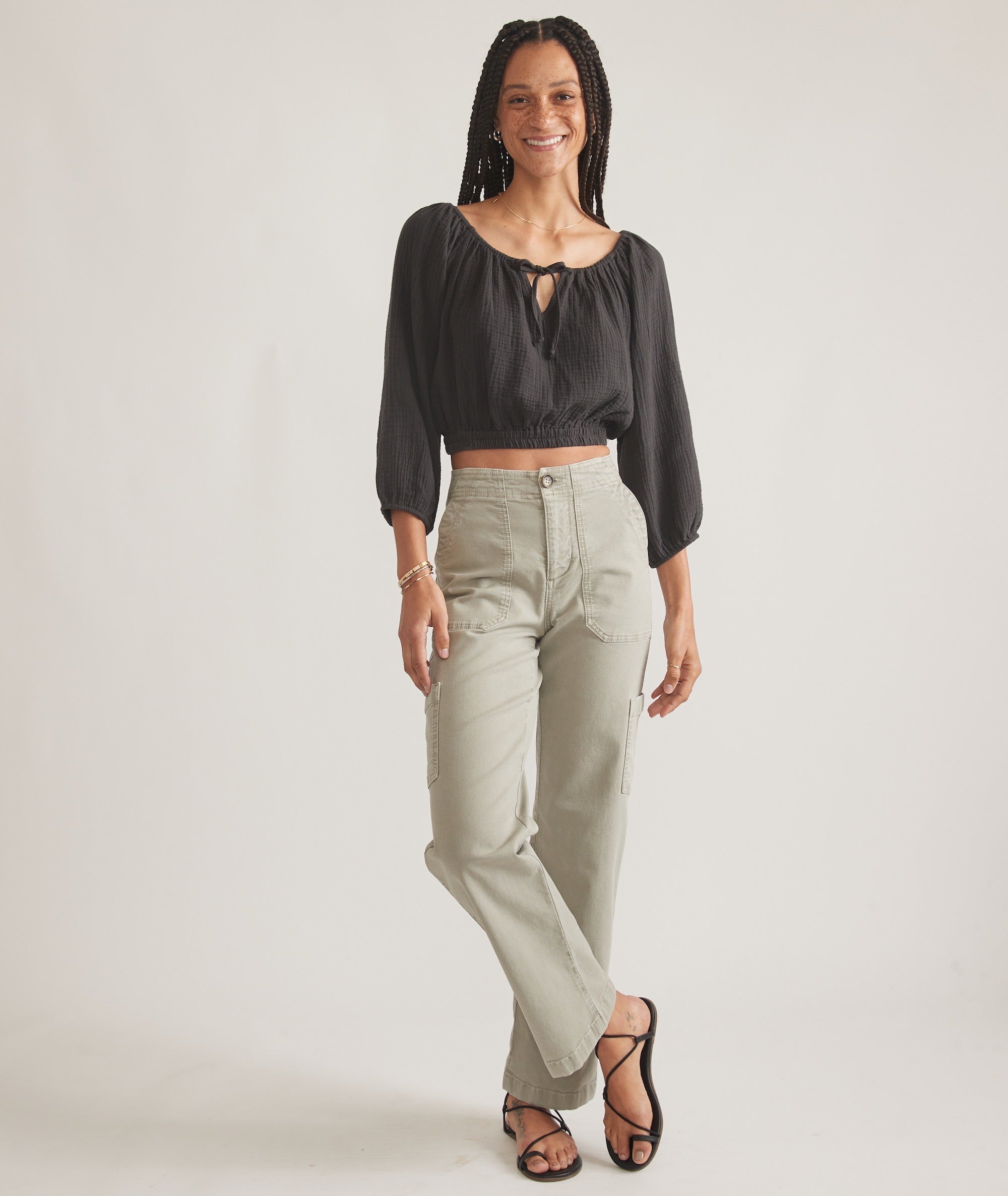 100% cotton crinkle Double Cloth (woo that's a mouthful) = effortless, lightweight texture that isn't see-through.