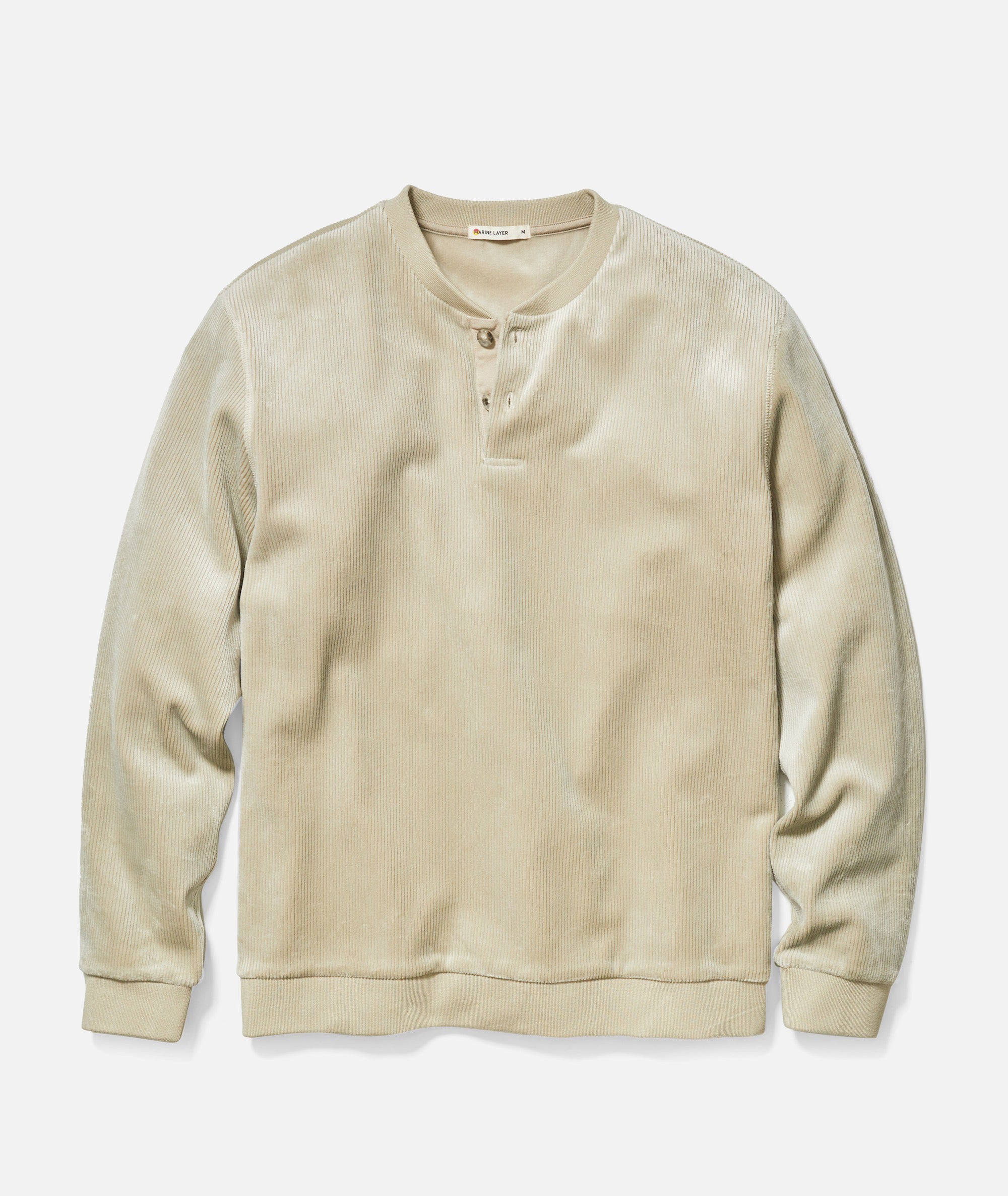 Introducing: Cord Velour. Arguably the softest thing we've ever made (seriously), this brand-new fabric is the definition of soft. With the ribbed appearance of corduroy, and the unbelievable softness of velour, it's featured here in a relaxed henley you'll find yourself wanting to wear 24/7.