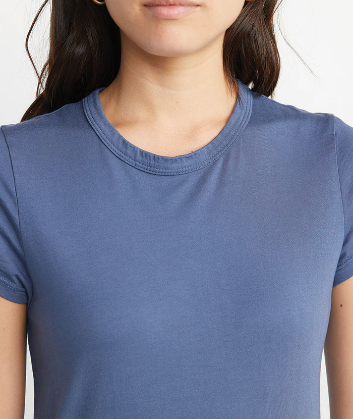 These shirts are the reason why we exist. Not only are they the most absurdly soft shirts you'll ever wear, but they're also made with recycled beechwood, so they're sustainable too. It's the crew of your dreams: soft, never see-through.